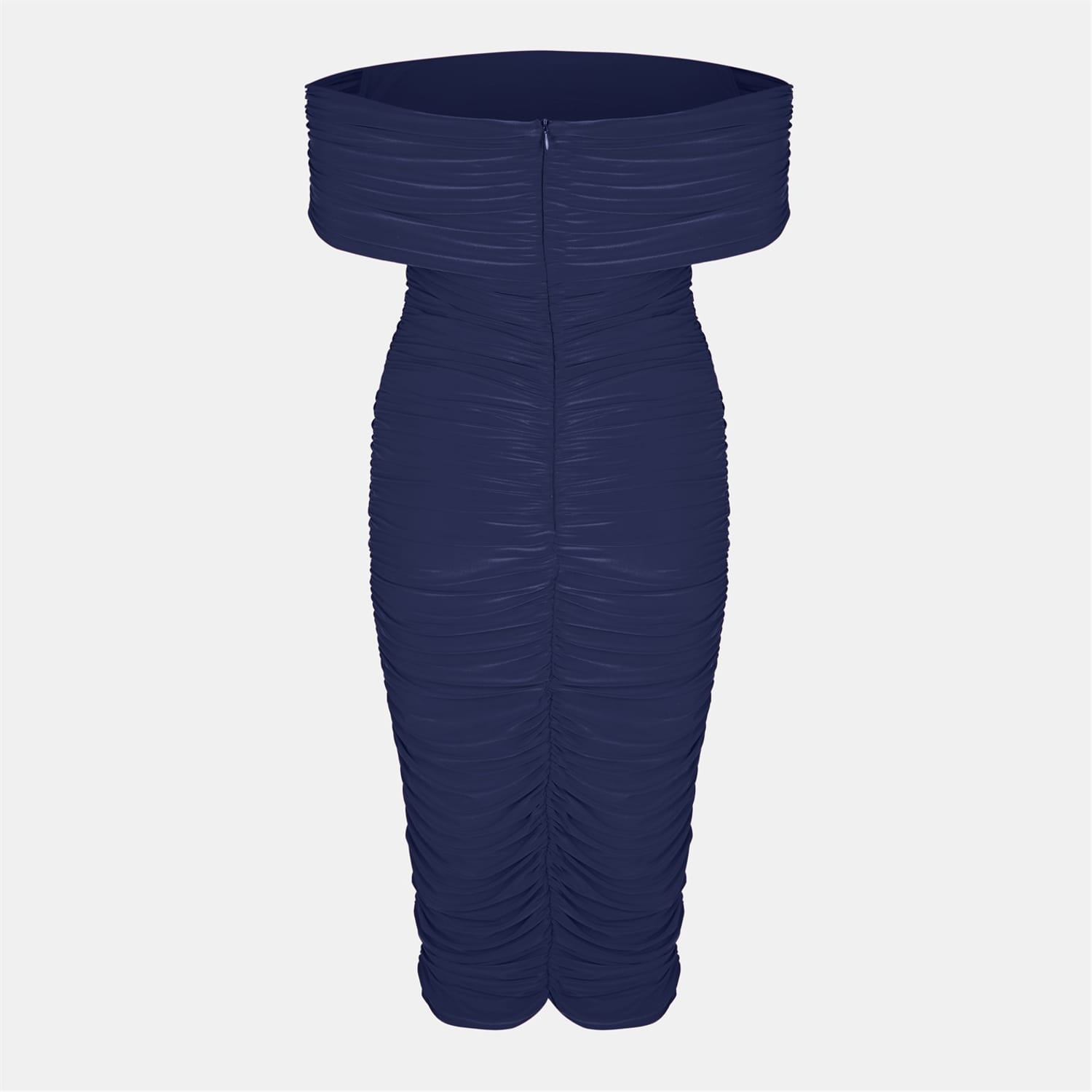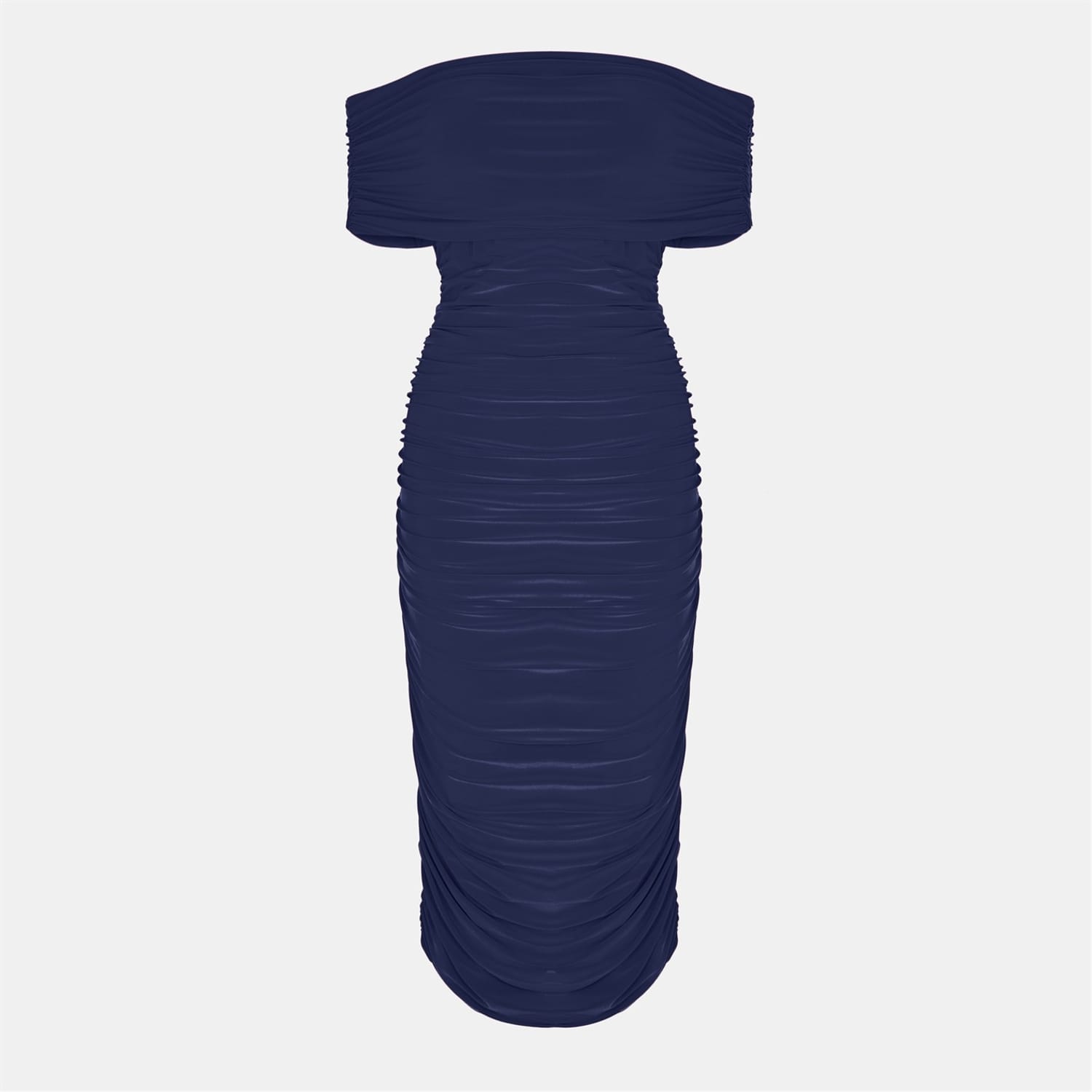 This Biba bodycon dress features an off-the-shoulder neckline and a skinny fit, perfect for a sleek silhouette. The midi length and straight hemline add a touch of elegance, while the solid pattern and ruched embellishments enhance its sophisticated appeal. A zipper closure ensures a secure fit, making it an ideal choice for any occasion. -