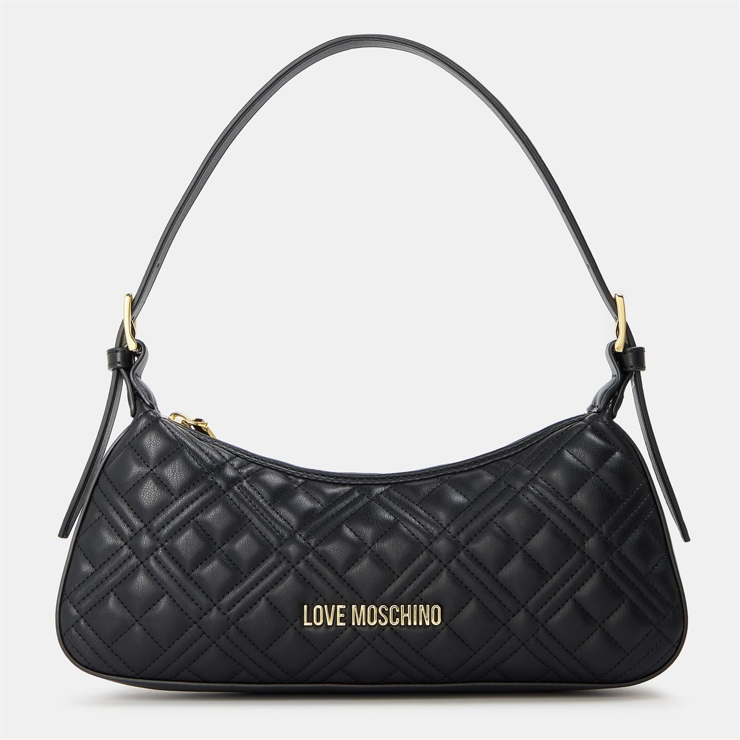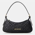 This Love Moschino baguette bag is a stylish addition to your collection. Featuring a geometric pattern, it is adorned with metal branding and an embossed metal logo for a distinctive look. The bag is equipped with a zipper closure and a convenient shoulder handle, ensuring both security and comfort. -