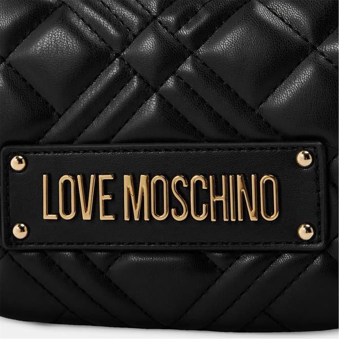 Discover the Love Moschino cross body bag, a stylish addition to your collection. Featuring a geometric pattern, this bag is designed with a convenient zipper closure and a comfortable shoulder handle. The bag is adorned with a metal logo, adding a touch of elegance to its design. -