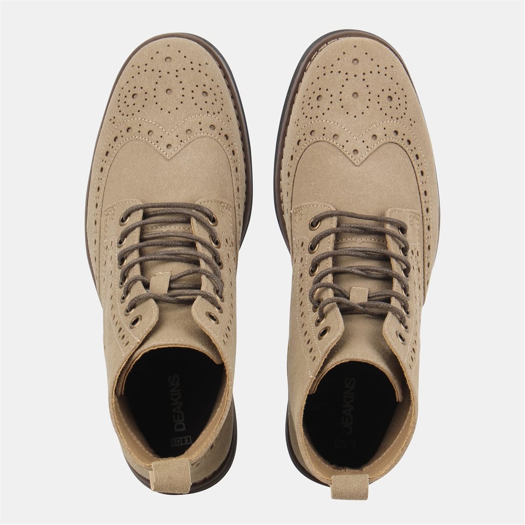Discover the Nicholas Deakins brogue boot, a stylish addition to your footwear collection. These boots feature a classic round toe design, offering both comfort and timeless appeal. Perfect for those seeking a blend of traditional craftsmanship and modern style, these shoes are a versatile choice for various occasions. -