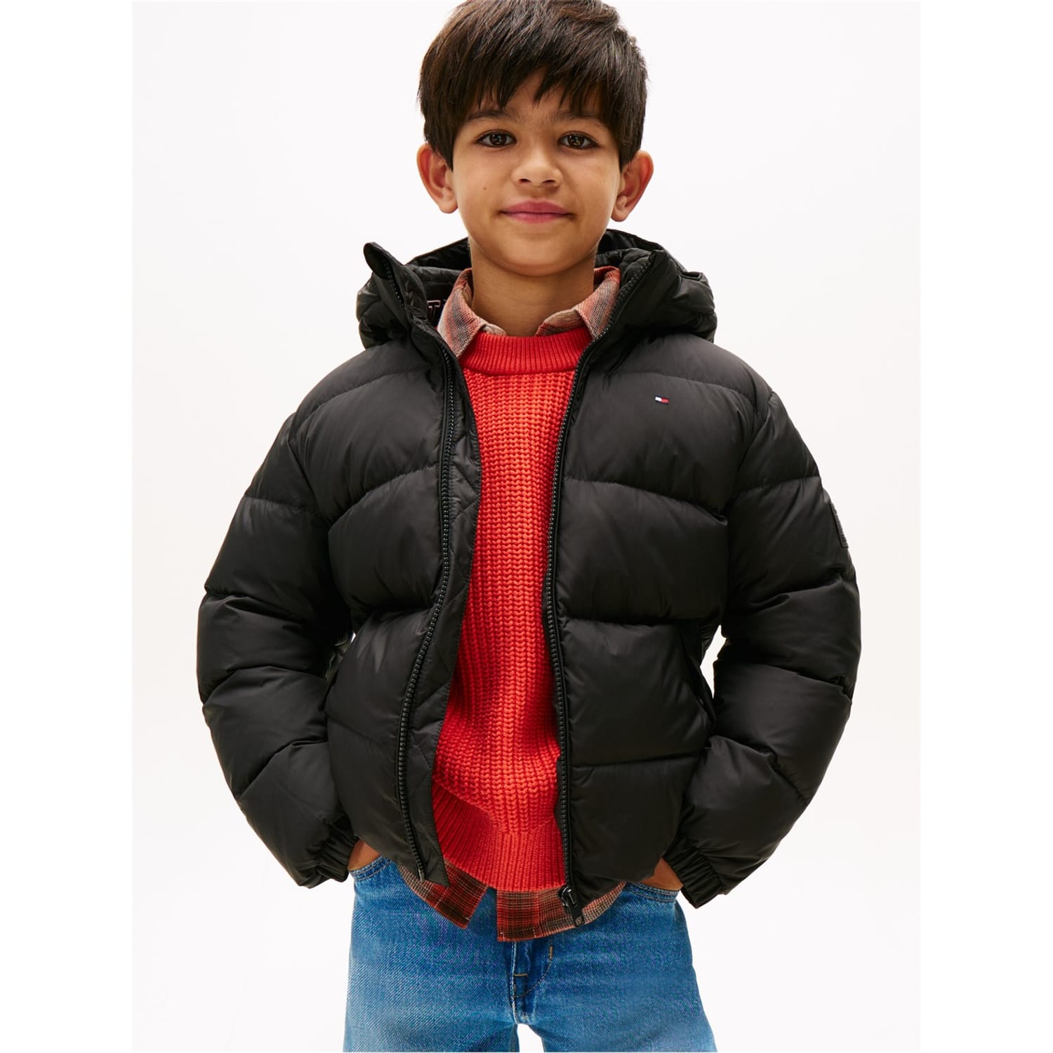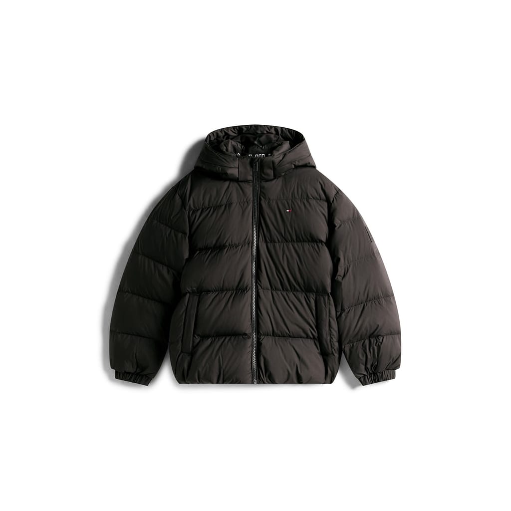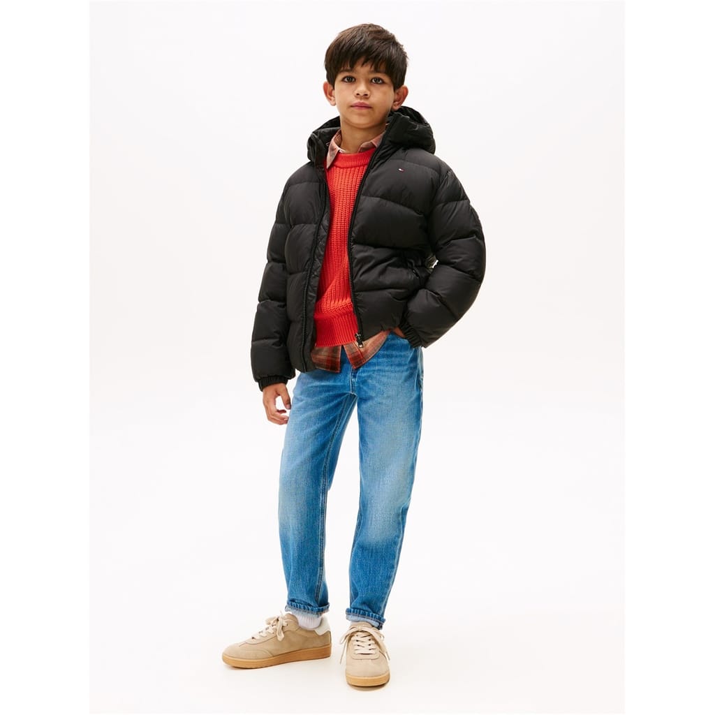 Tommy Hilfiger's Kids' Essential Shorts Puffer Jacket delivers practical warmth with classic style. This children's outerwear piece features a cropped cut with insulated padding and a structured design that maintains the brand's classic aesthetic. The puffy coat ensures reliable protection while remaining adaptable.