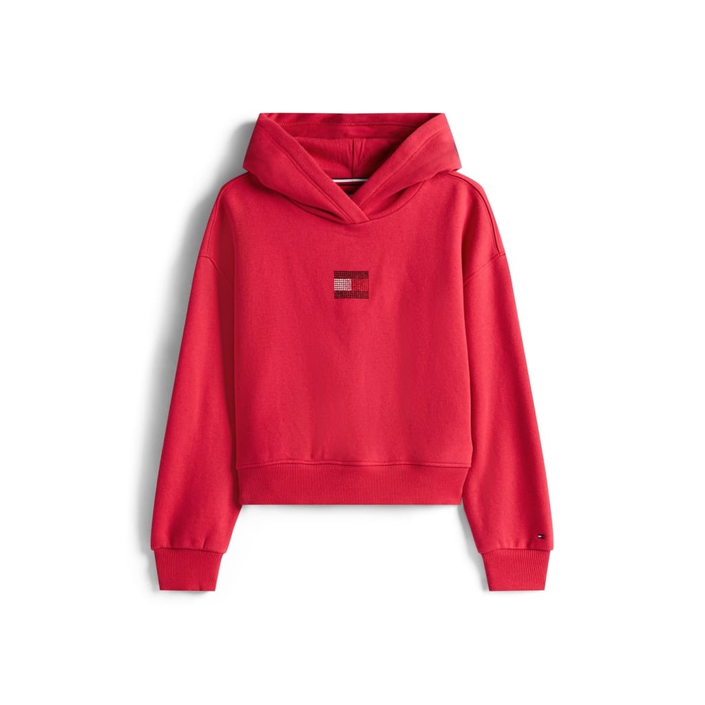 This Tommy Hilfiger top features a solid pattern with elegant diamante embellishments. Designed with long sleeves and ribbed cuffs, it offers a regular fit for comfortable wear. The top showcases the brand's signature style, making it a versatile addition to any wardrobe. -