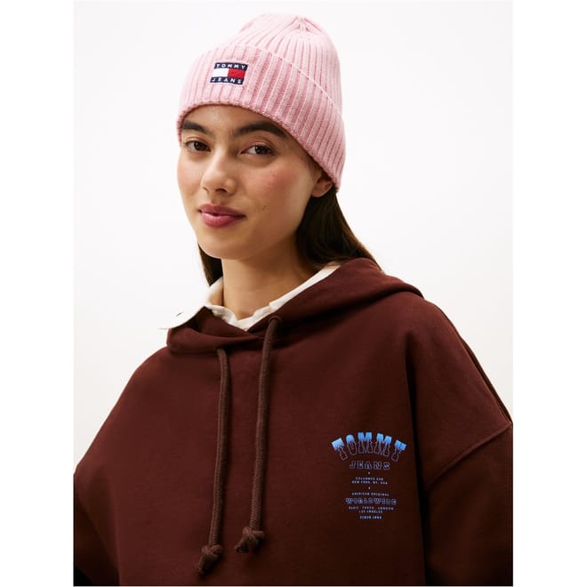 Tommy Jeans' women's Flag Beanie delivers heritage style in a compact shape. The ribbed knit provides snug comfort while the embroidered flag emblem showcases the brand's aesthetic.