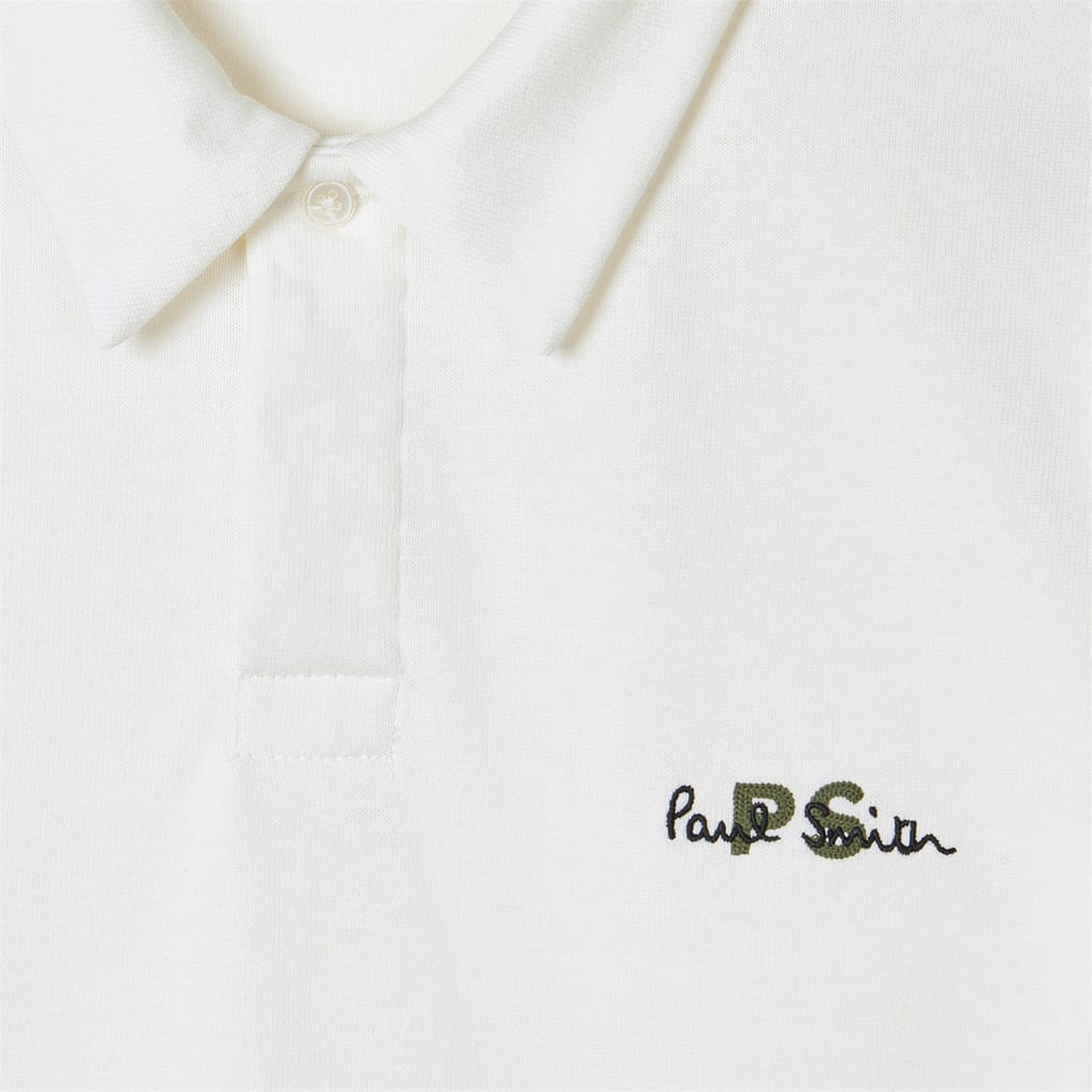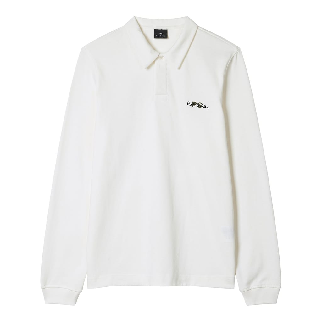 This PS Paul Smith top features a classic polo collar and long sleeves, offering a regular fit. The solid pattern is complemented by embroidered details, adding a touch of sophistication. The button closure ensures a neat finish, while ribbed cuffs provide a comfortable fit. -