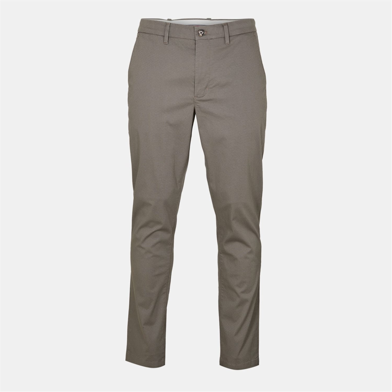 Tommy Hilfiger Denton chinos offer a regular fit with a stylish print. Featuring a zip fly and button closure, these chinos are designed for comfort and practicality. The addition of pockets enhances their functionality, making them a versatile choice for any wardrobe. -