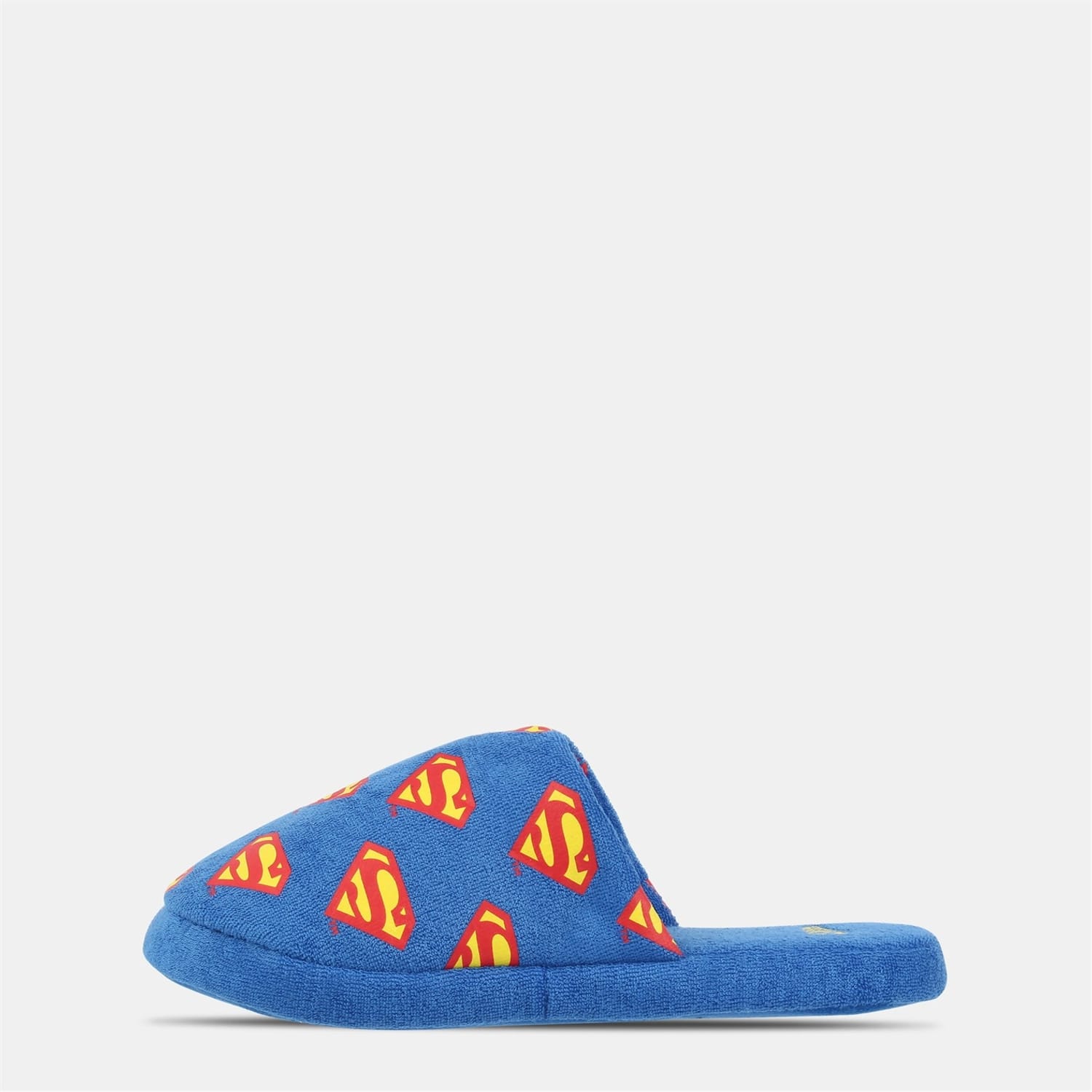 Step into comfort with these Character slippers, designed in a mule style for easy wear. Featuring a closed toe, these shoes showcase a striking Super Man graphic print, adding a playful touch to your footwear collection. Perfect for those who appreciate a blend of style and comfort in their everyday shoes. -