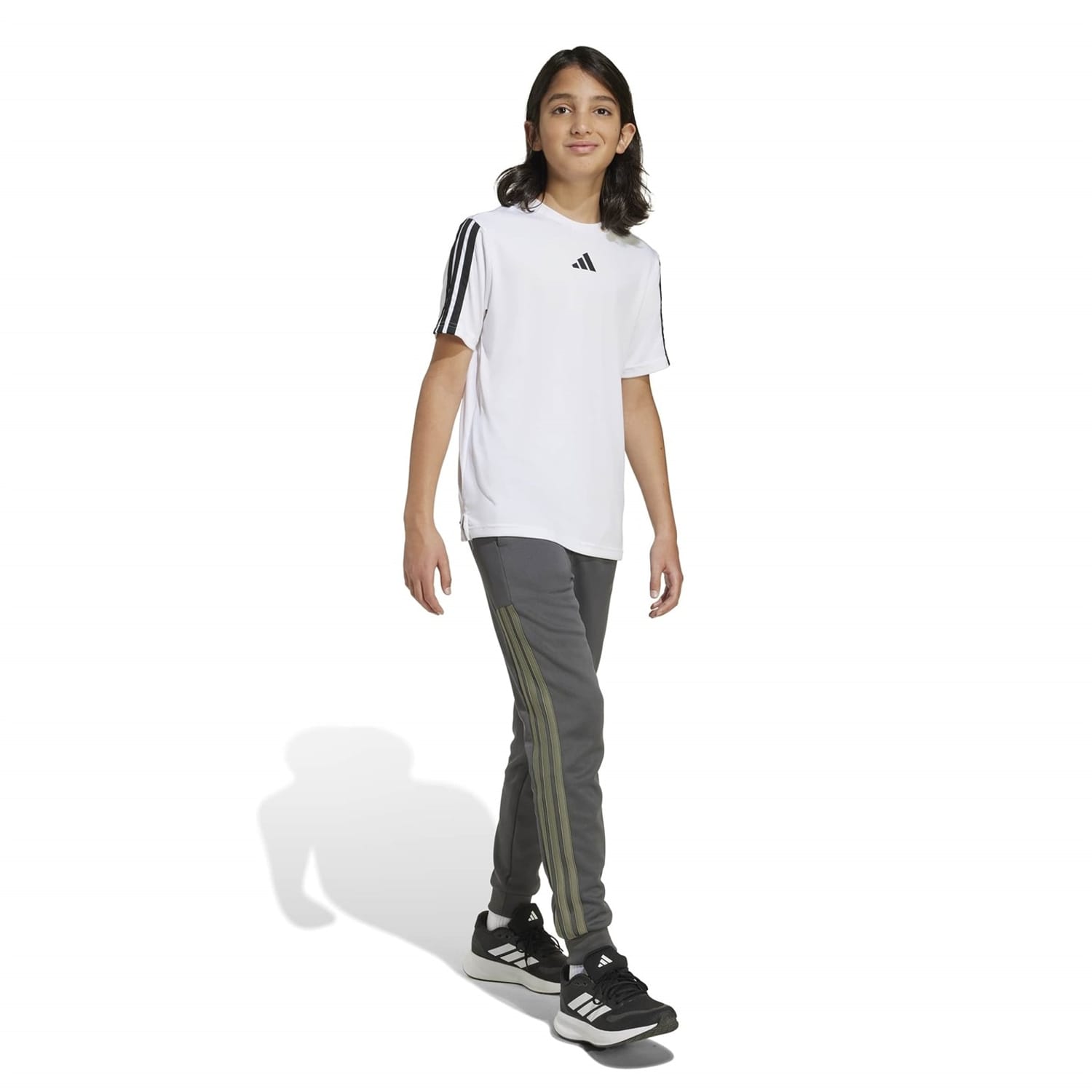 adidas track pants featuring the iconic three stripes pattern. Designed for athletic pursuits, these pants offer a comfortable fit and style. Ideal for those seeking a blend of functionality and brand recognition in their sportswear. -