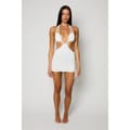 This Honeyz mini dress is a stunning bodycon piece featuring a halter neckline and a sleek slim fit. The solid pattern and cut-out embellishments add a touch of elegance, while the tie closure ensures a secure fit. Perfect for making a statement, this dress combines style and sophistication effortlessly. -