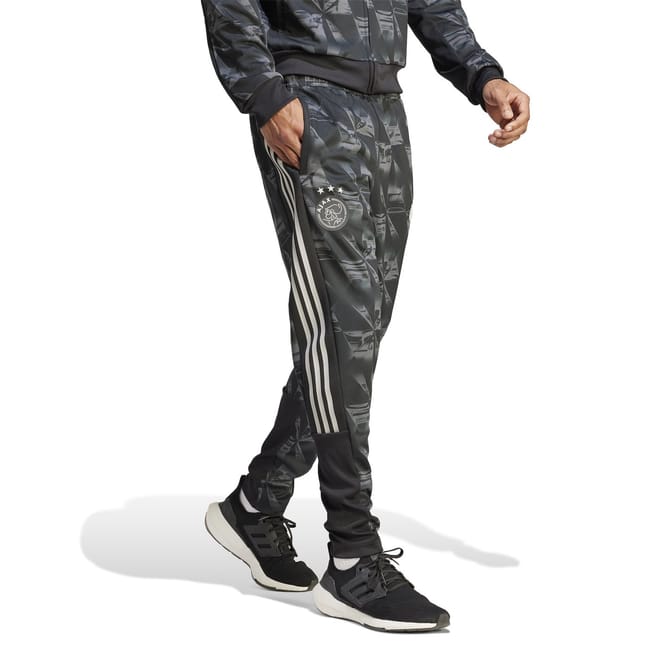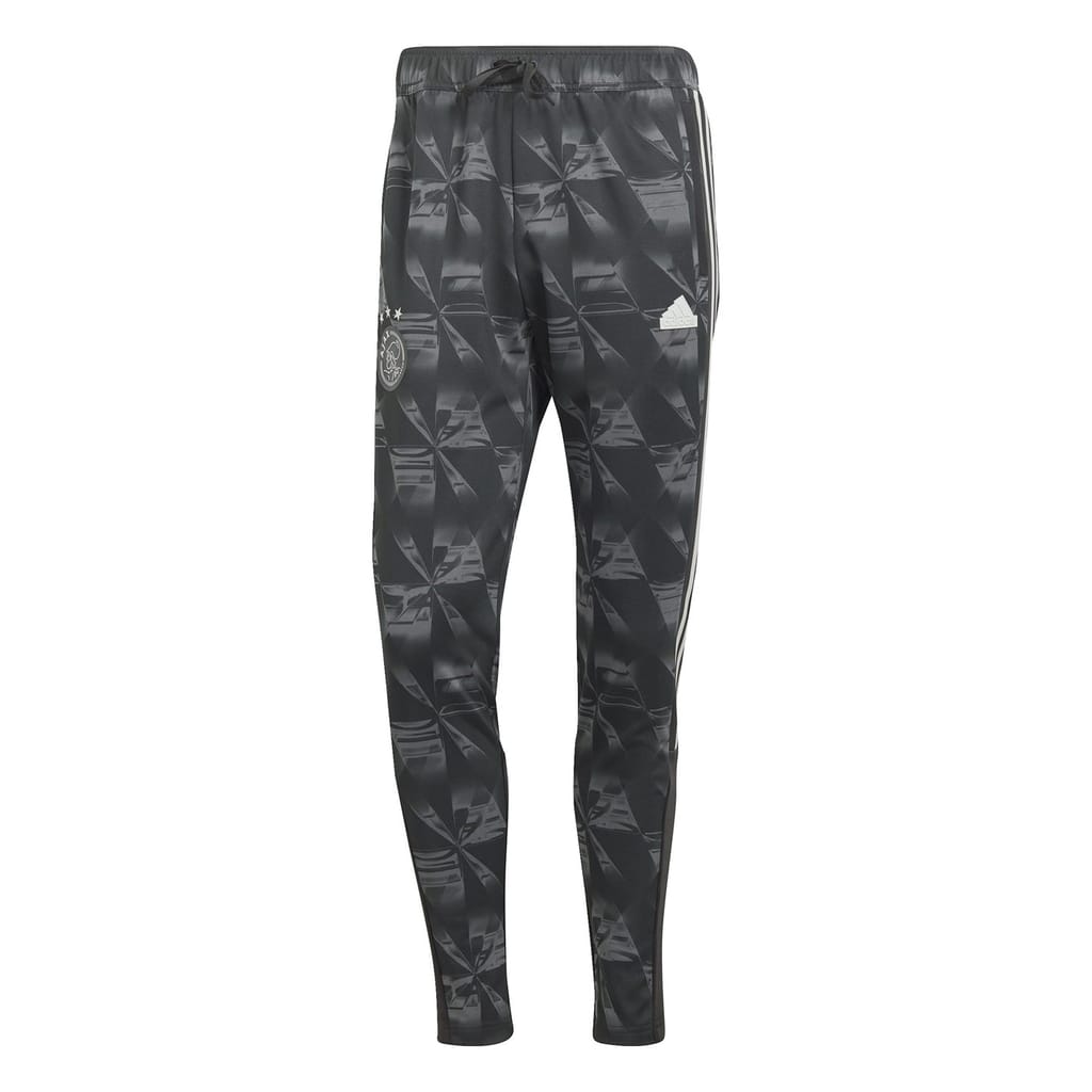 Introducing the adidas Ajax track pants, designed for performance and running enthusiasts. These slim-fit pants feature a geometric pattern and a drawstring closure for a secure fit. Part of the activewear collection, they are embellished with the iconic adidas logo, making them a stylish choice for your athletic wardrobe. -
