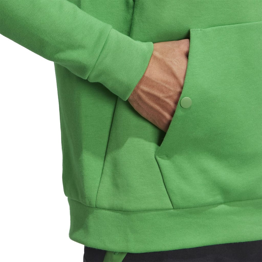 This adidas top features a hooded design with long raglan sleeves, offering a regular fit. The solid pattern is complemented by practical pockets and a distinctive logo embellishment, making it a versatile addition to your wardrobe. -