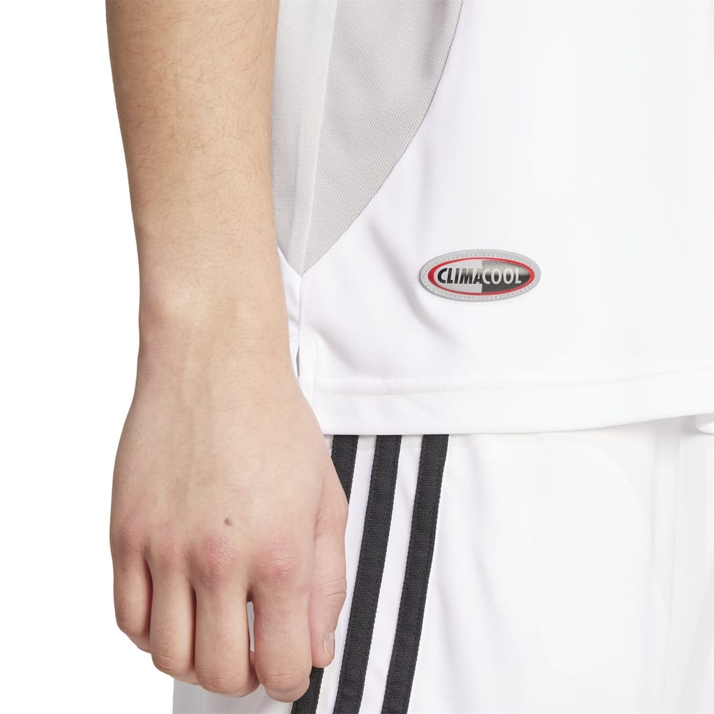 This adidas Originals top features a regular fit with a crew neck and short raglan sleeves. Crafted with Climacool technology, it ensures breathability and comfort. The solid pattern is complemented by a subtle logo embellishment, making it a versatile addition to your wardrobe. -