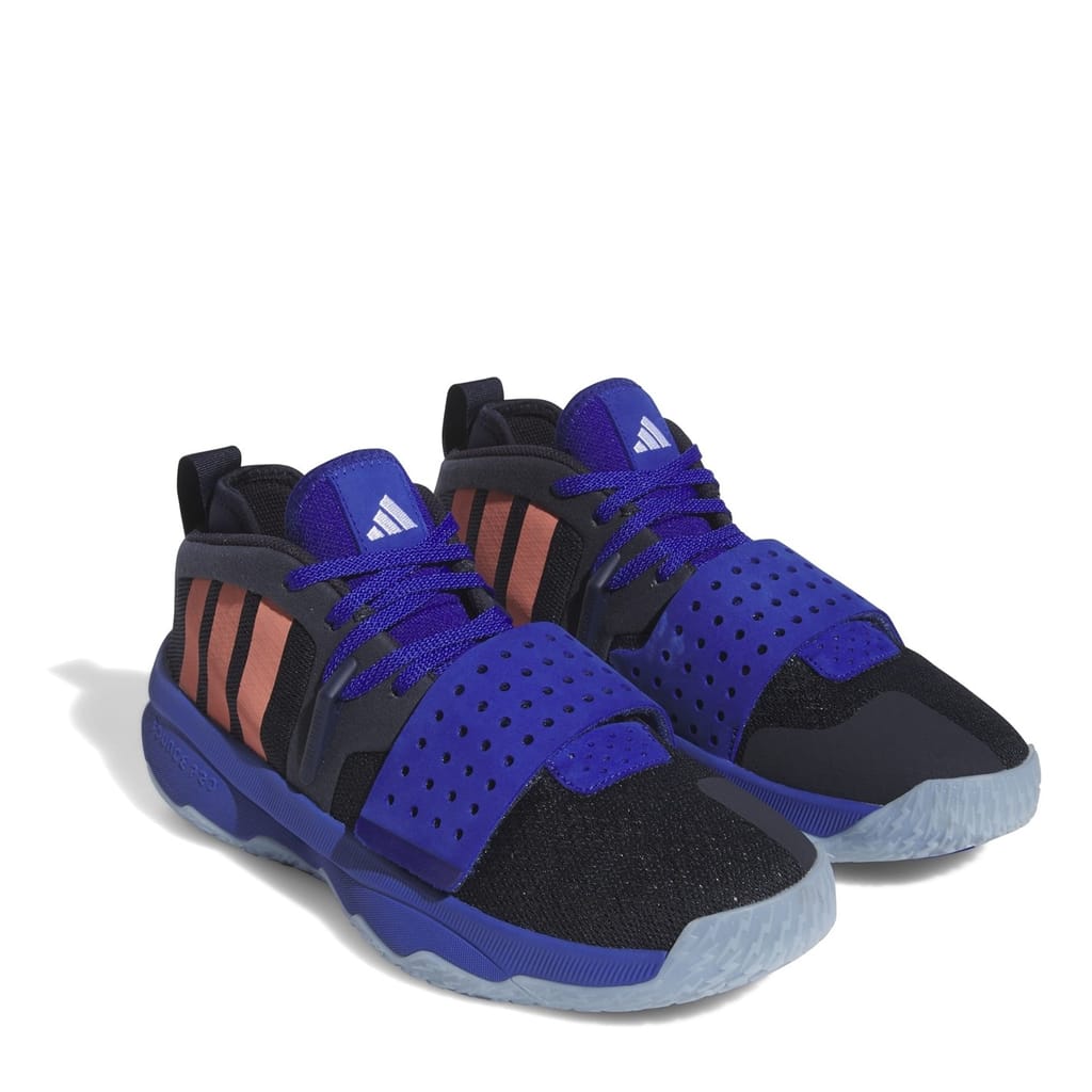 The adidas Dame 8 sneakers are a stylish choice for those seeking mid-top shoes. Crafted from premium leather, these sneakers offer durability and a sleek appearance. The round toe design ensures comfort, making them ideal for various activities. Perfectly blending functionality with a modern aesthetic, these shoes are a must-have for any sneaker enthusiast. -