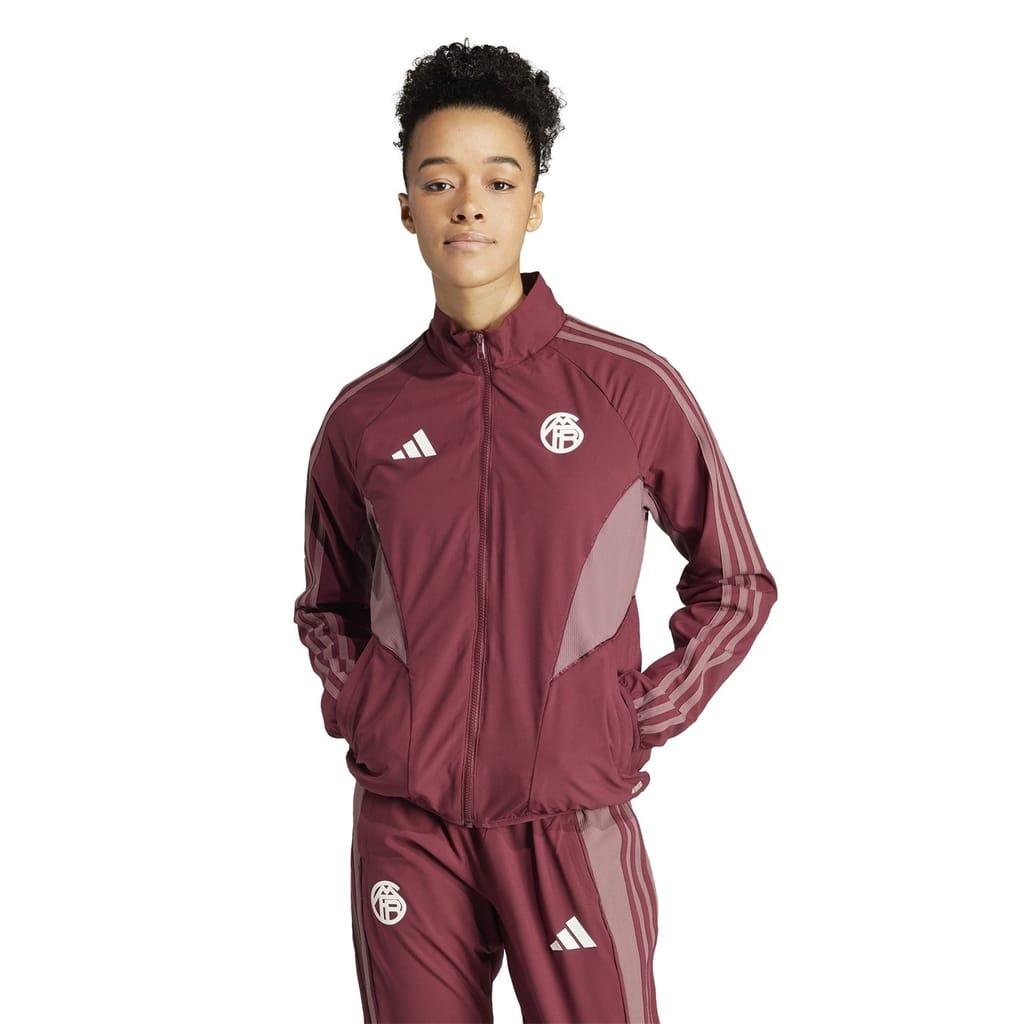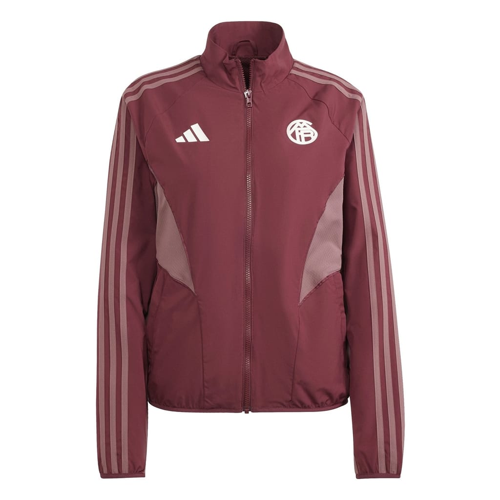 This adidas track jacket, part of the activewear collection, features a high neck and raglan sleeves for a comfortable fit. The regular fit design includes a full zipper closure, elasticated cuffs, and hem for added flexibility. The color block pattern is complemented by side stripes and the iconic logo, making it a stylish choice for FC Barcelona fans. -