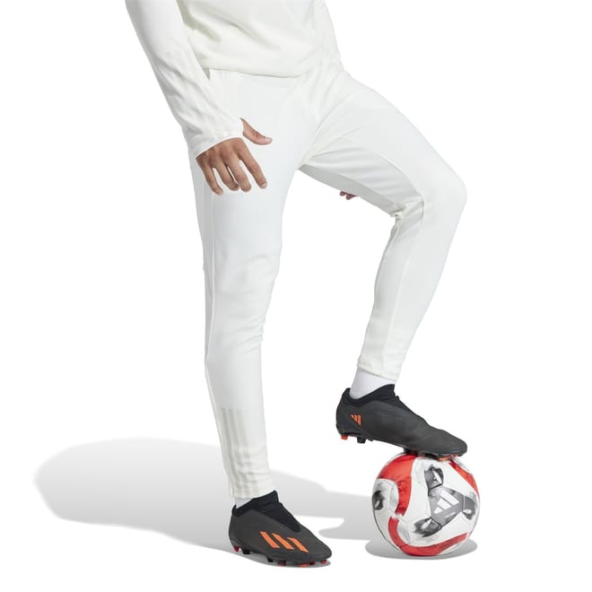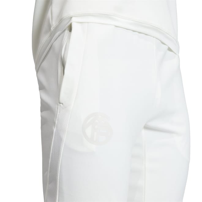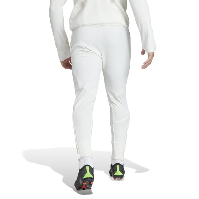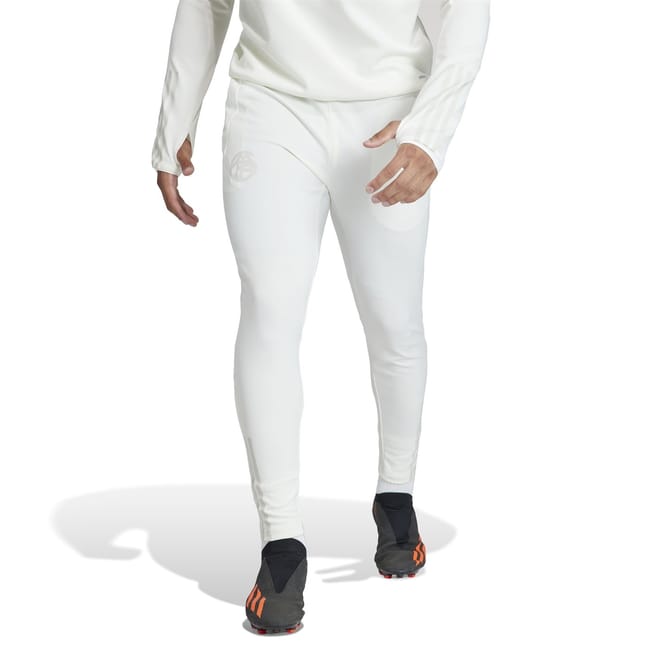 These adidas FC Barcelona athletic pants are designed for performance, featuring a slim fit and a convenient zipper closure. Ideal for running, they are part of the activewear collection. The pants are embellished with a logo, adding a touch of style to your athletic wardrobe. -