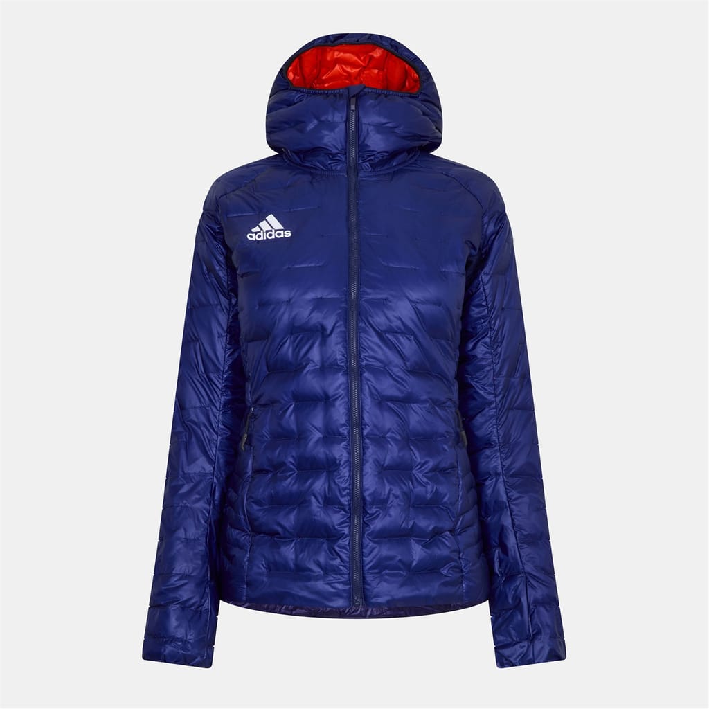 This adidas down jacket features a regular fit with a solid pattern, offering both style and comfort. The raglan sleeves and elasticated cuffs provide ease of movement, while the straight hem adds a clean finish. A zipper closure ensures a secure fit, and the iconic logo embellishment adds a touch of brand recognition. -