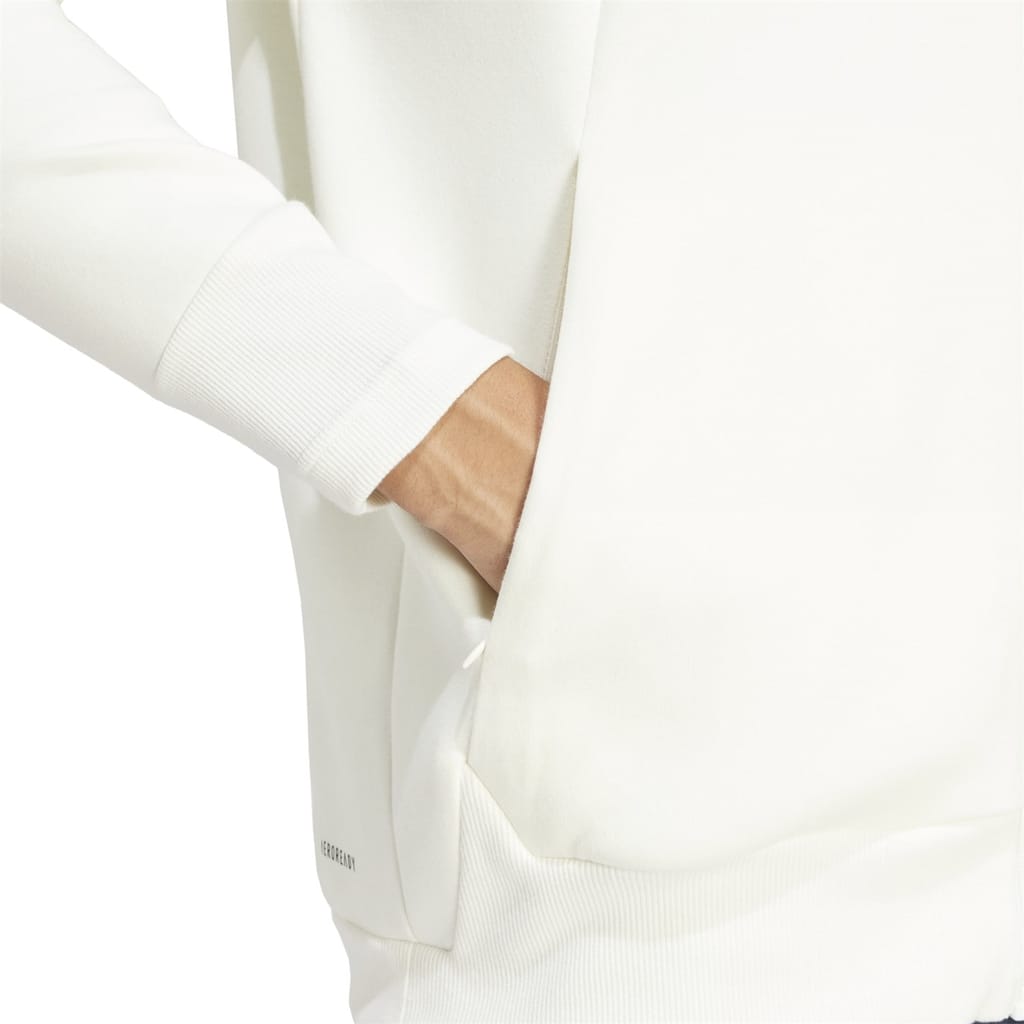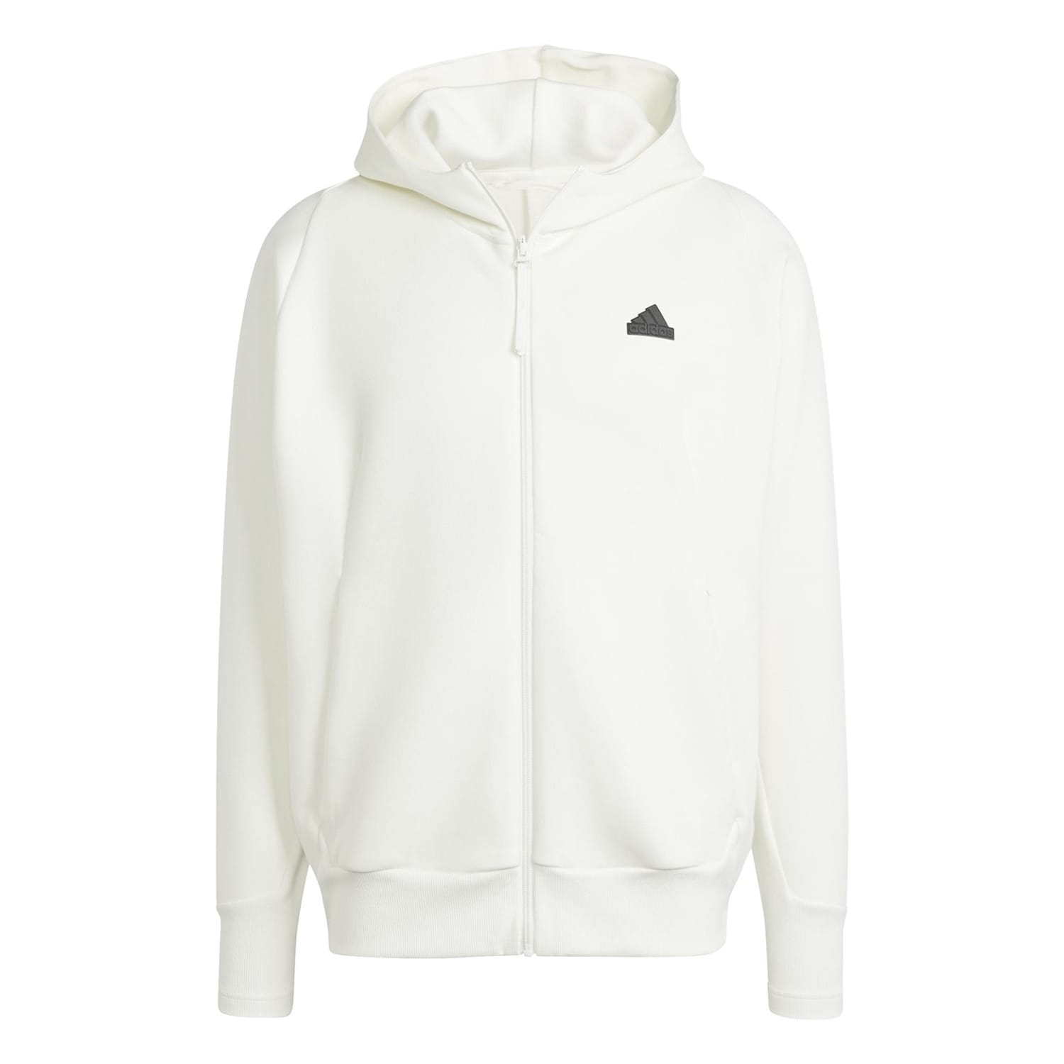 The adidas Z.N.E. sweatshirt jacket is a part of the activewear collection, featuring a hooded design with a full zipper closure. It offers a regular fit with ribbed cuffs and hem for added comfort. The solid pattern is complemented by a logo embellishment, making it a stylish choice for those seeking both functionality and brand appeal. -