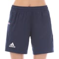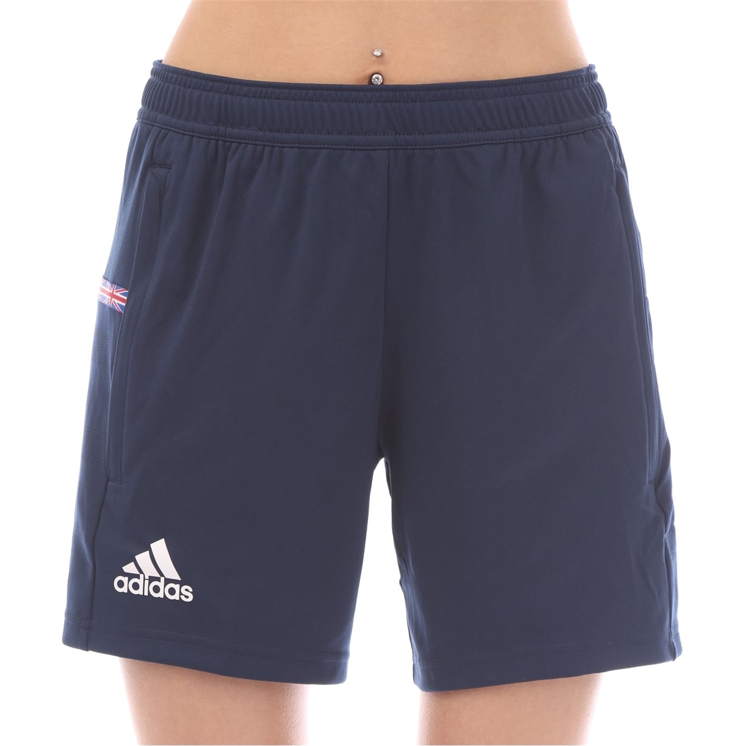 These adidas bermuda shorts are a versatile addition to your casual and activewear collections. Featuring a solid pattern, they come with a convenient drawstring closure and are adorned with a logo and flag logo embellishments. The shorts also include practical pockets, making them both stylish and functional for various activities. -