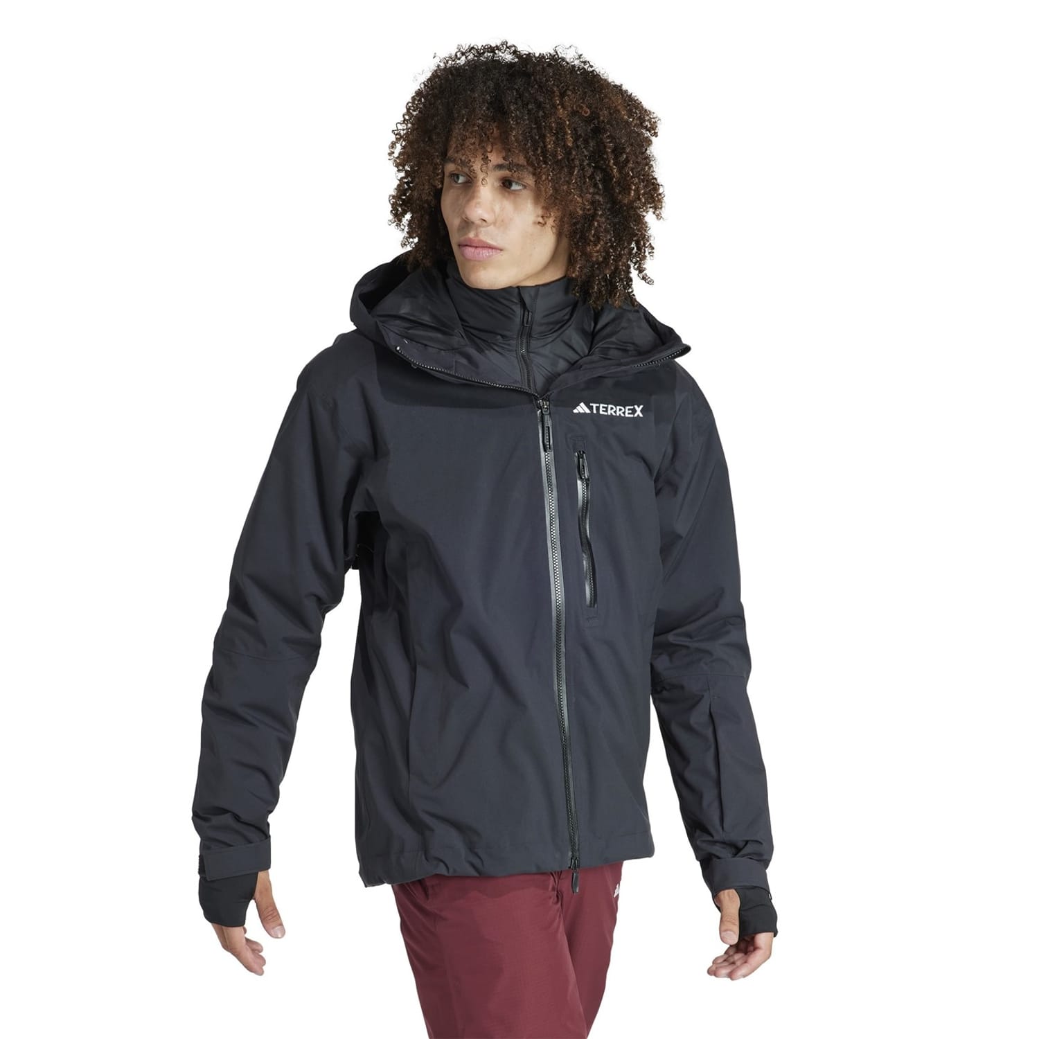 This adidas softshell jacket features a high neck and a regular fit, offering both style and comfort. The jacket is designed with a zipper and snap closure, complemented by ribbed cuffs for a secure fit. It includes practical zipped pockets and a straight hem. The solid pattern and logo embellishment add a touch of classic appeal, making it a versatile addition to your wardrobe. -