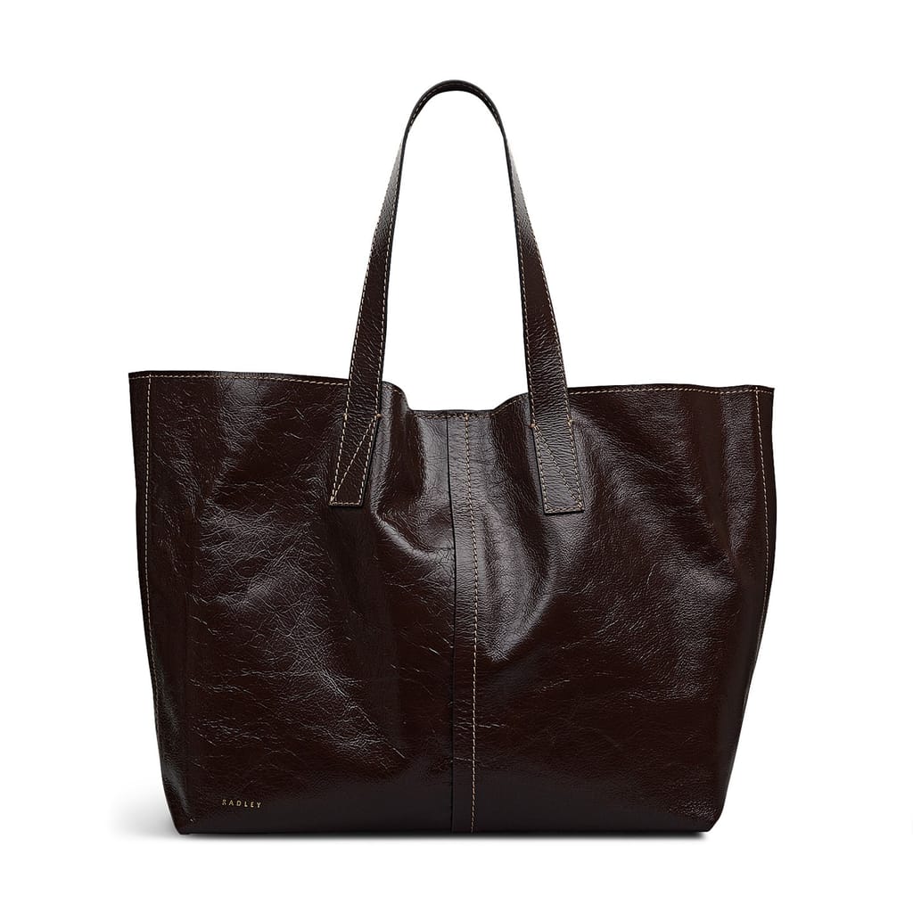 'Boasting oversized proportions, Broadway Market is crafted with supple, unlined crackle-sheen leather. Designed with Radley craft details that include the origami folded base, contrast stitching and the winged sides that can be tucked in using the press stud tab.