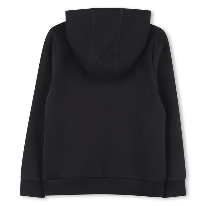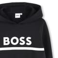 This Boss top features a hooded neck and long sleeves, offering a regular fit. The design is accentuated with a logo print, adding a touch of brand identity. It includes ribbed cuffs and a ribbed hem for a refined finish. -
