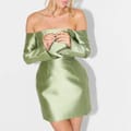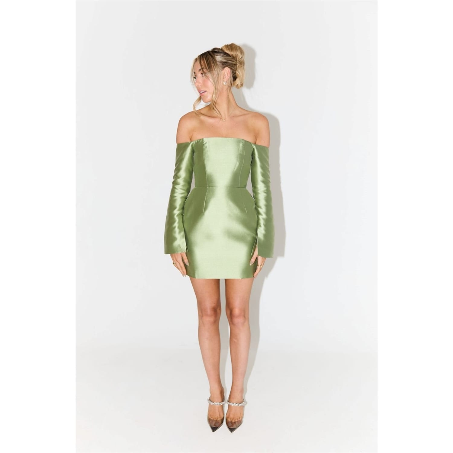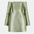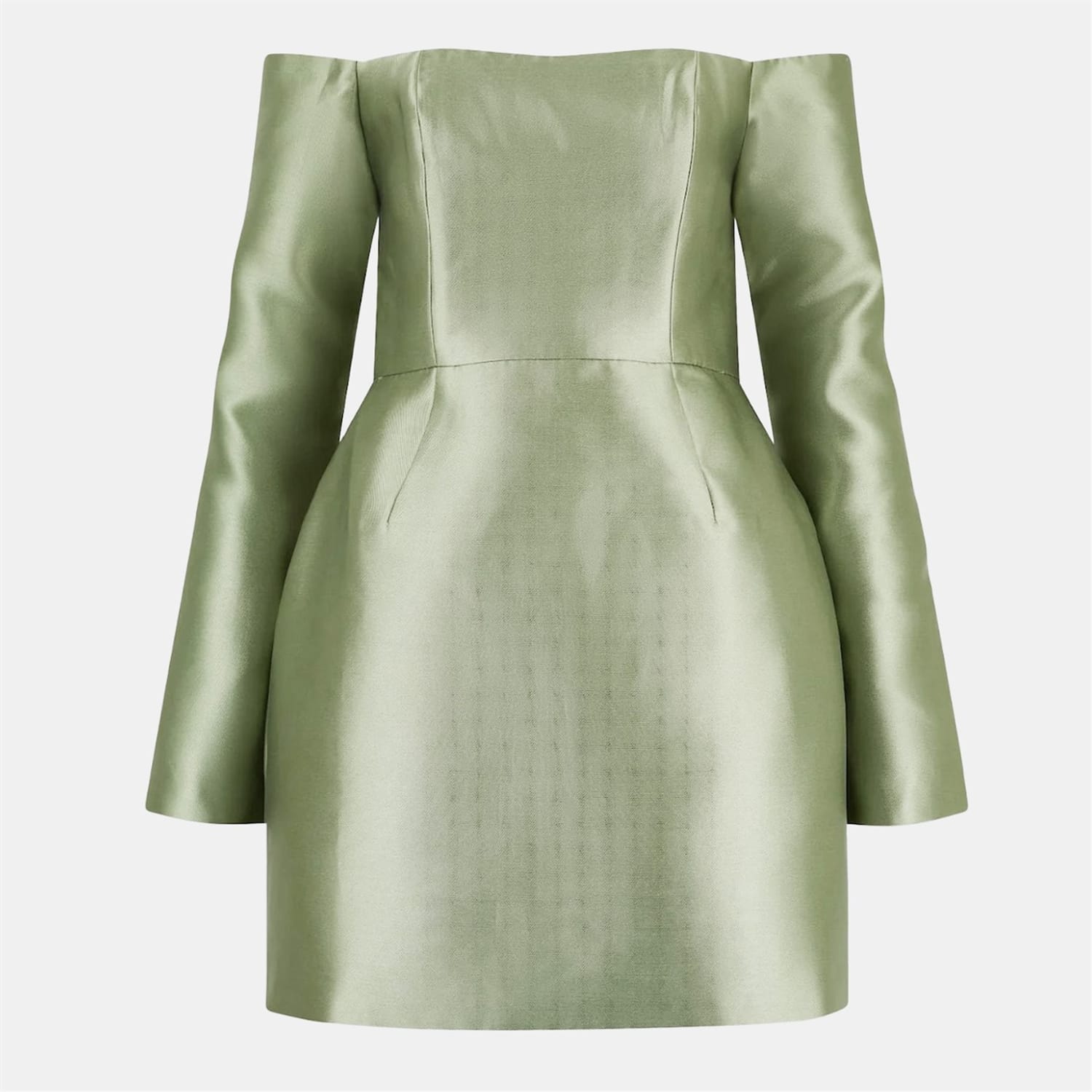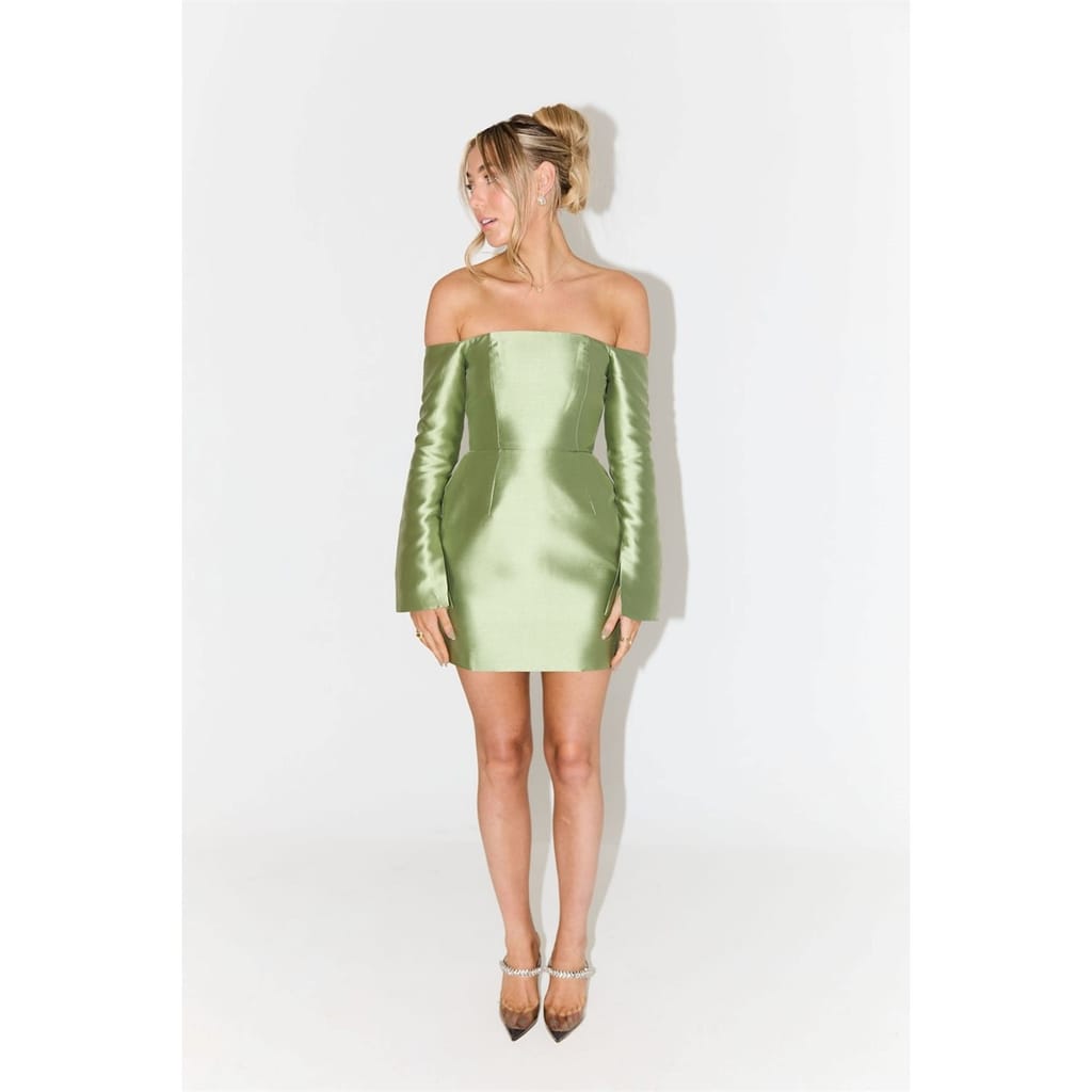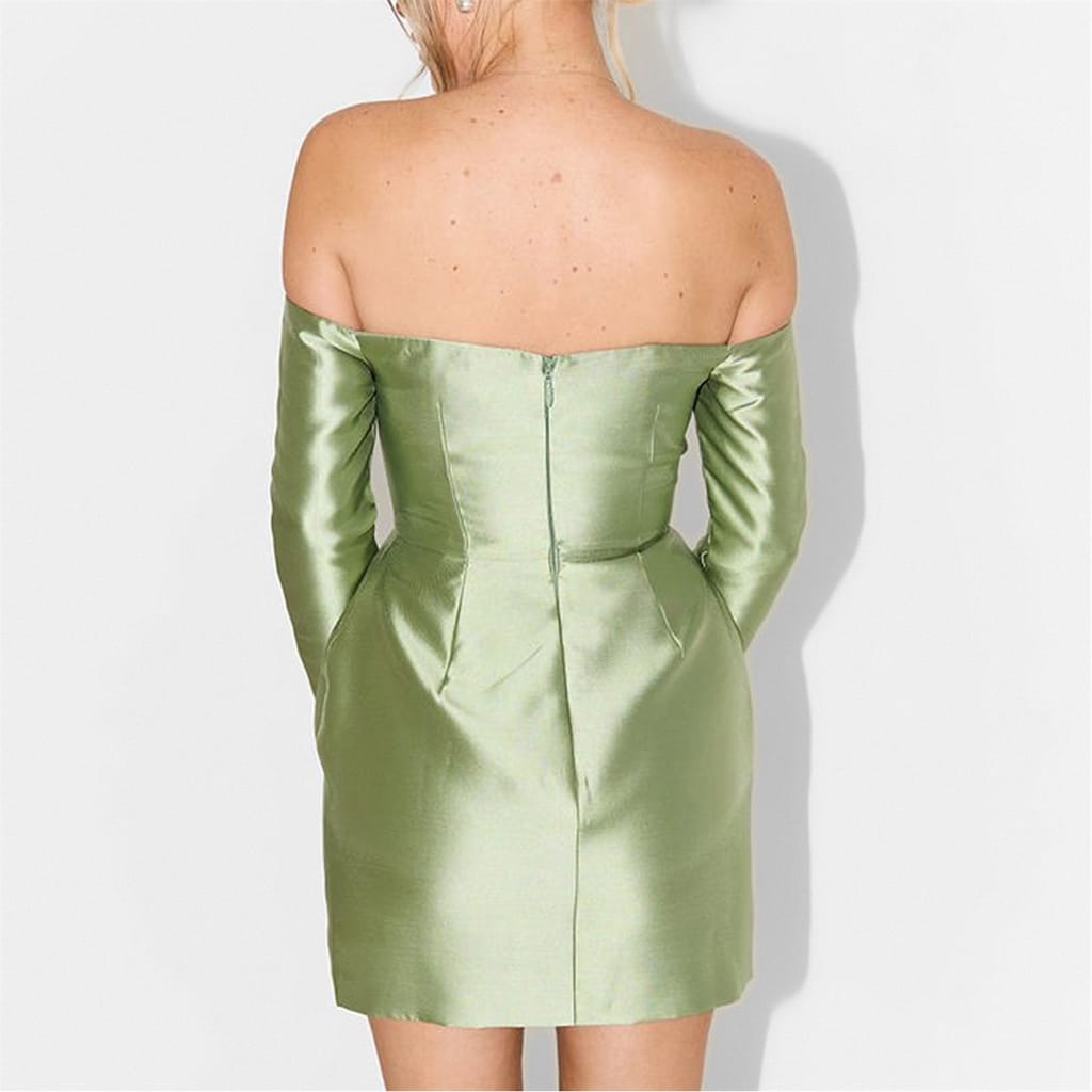 This Odd Muse mini dress features an off-the-shoulder neckline and a solid pattern, creating a sleek and modern look. The long sleeves and straight hem complement its A-line style, while the slim fit ensures a flattering silhouette. A zipper closure adds practicality to this elegant piece. -