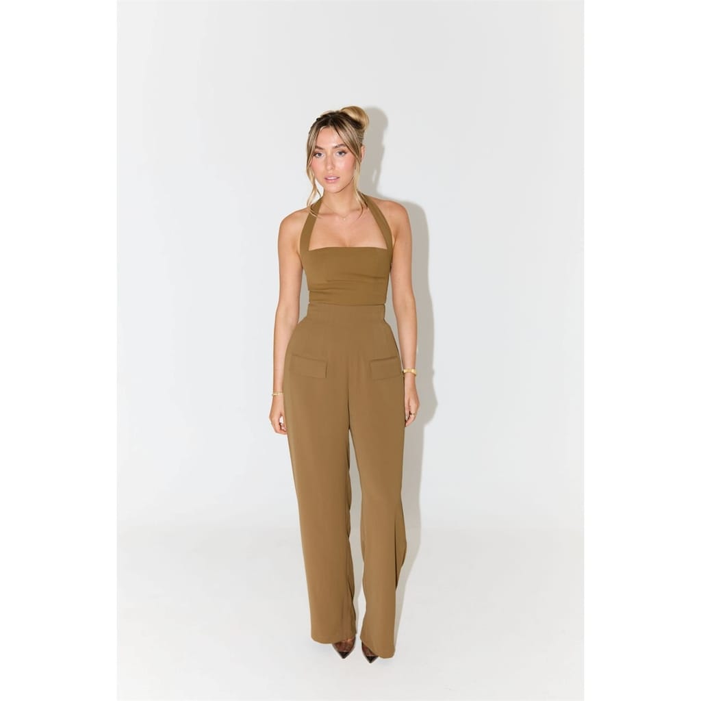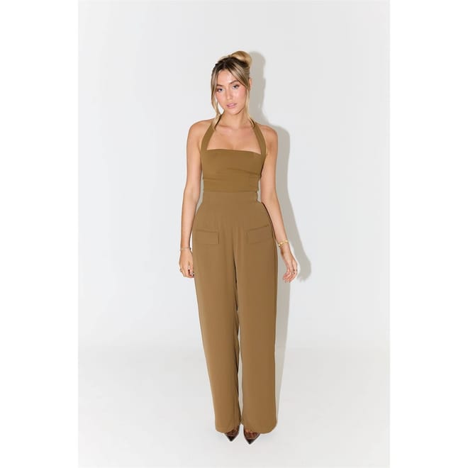 Discover the elegance of Odd Muse's sleeveless jumpsuit, featuring a halter neckline and relaxed fit. This stylish piece is designed with practical pockets, offering both functionality and fashion. -