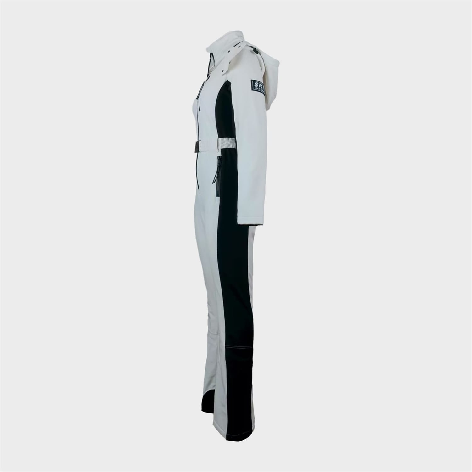 Discover the Jack Wills stripe skisuit, designed for those who appreciate style and functionality. This jumpsuit features a hooded neck and long plain sleeves, offering a regular fit. The closure includes a zipper, snap button, and belt for secure wear. Embellished with pockets, front zipper pockets, patches, and zipped pockets, it combines practicality with a sleek design. -