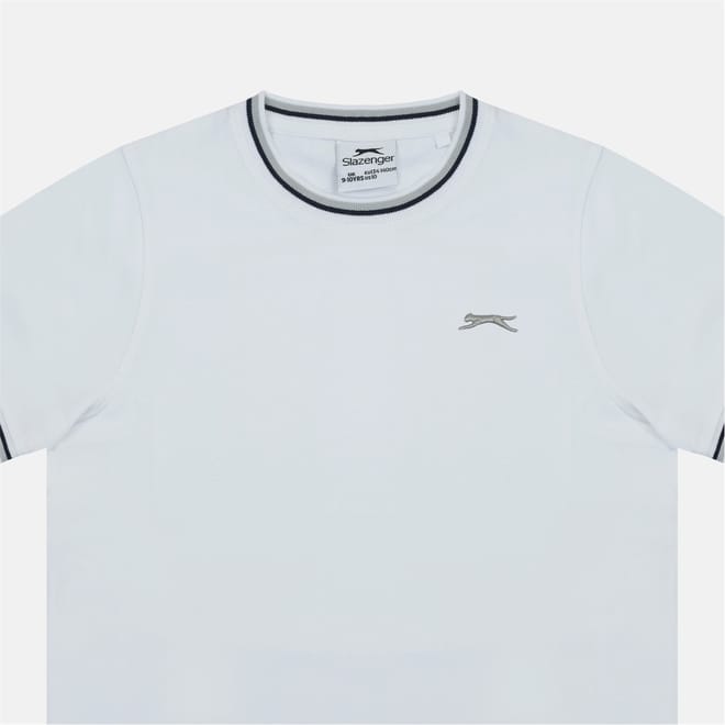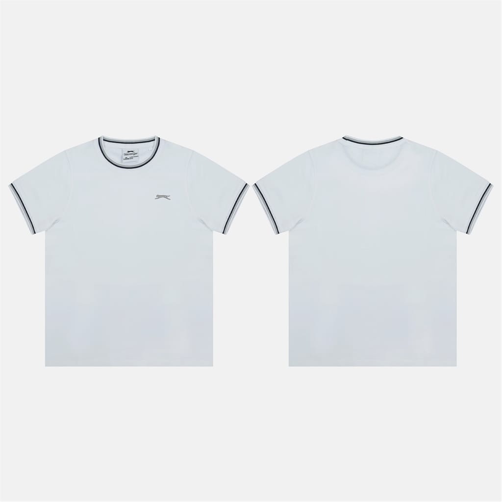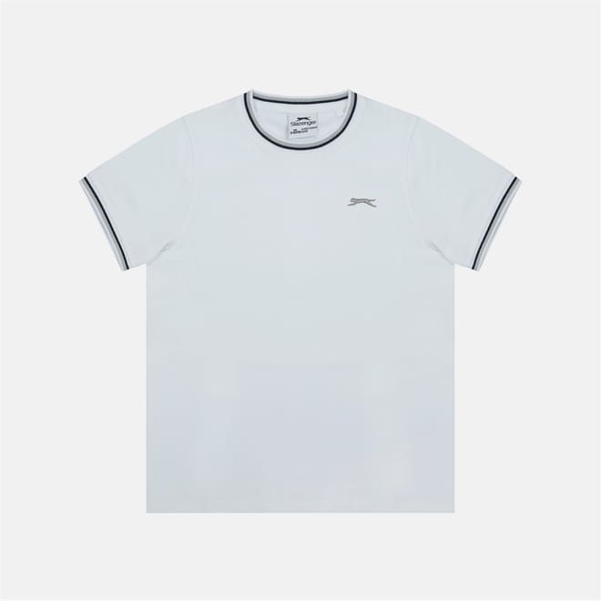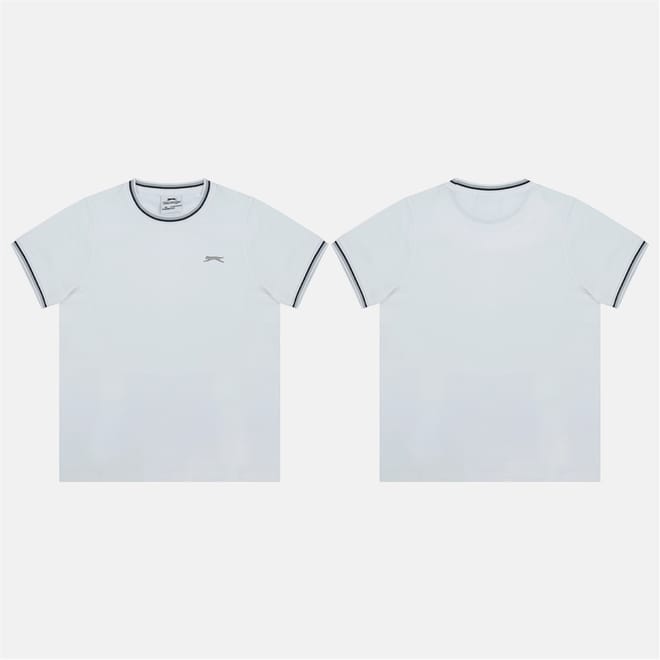 This Slazenger top features a regular fit with a rib crew neck and short sleeves. The solid pattern is complemented by ribbed cuffs and collar, offering a classic and comfortable style. -