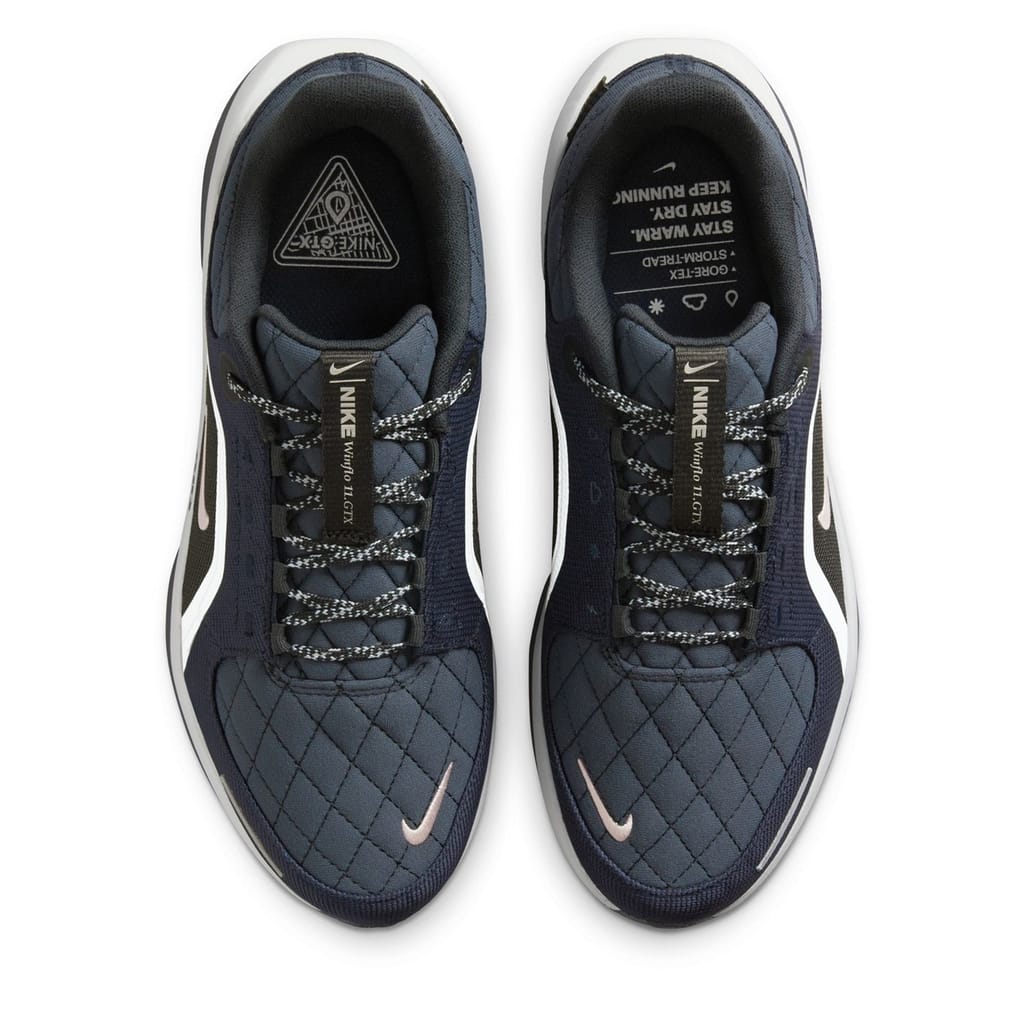 With a waterproof GORE-TEX upper and reflective design details, this winterized Winflo 11 provides a balanced ride for wet-weather runs. Experience energy return with a combination of Cushlon 3.0 foam and a full-length Nike Air unit in the midsole. Plus, an elastic midfoot band and a spacious forefoot provide an accommodating, comfortable fit. -