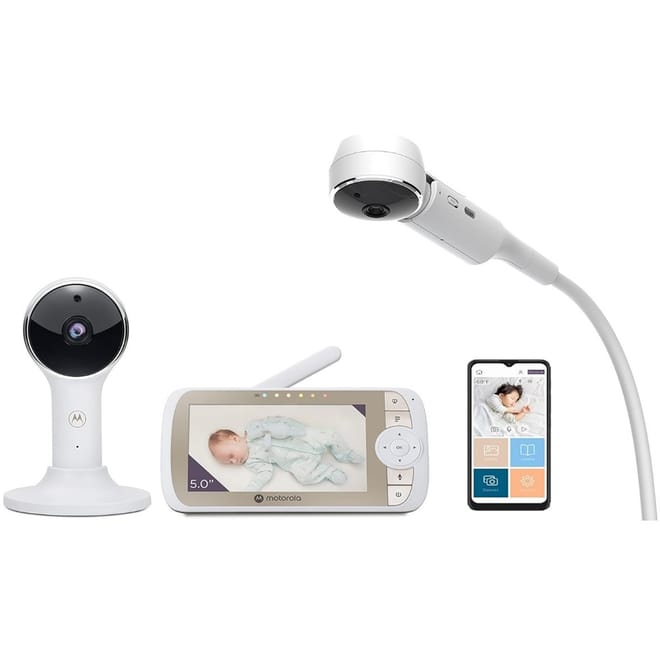 Motorola VM65X Connect includes a 5” screen, a camera with digital pan, tilt & zoom that connects to the Motorola Nursery app via Wi-Fi to enable Full HD (1080p) video and an over-the-crib mount giving a full overhead view of your child. Speak to and hear your little ones from home or on-the-go with the two-way talk.