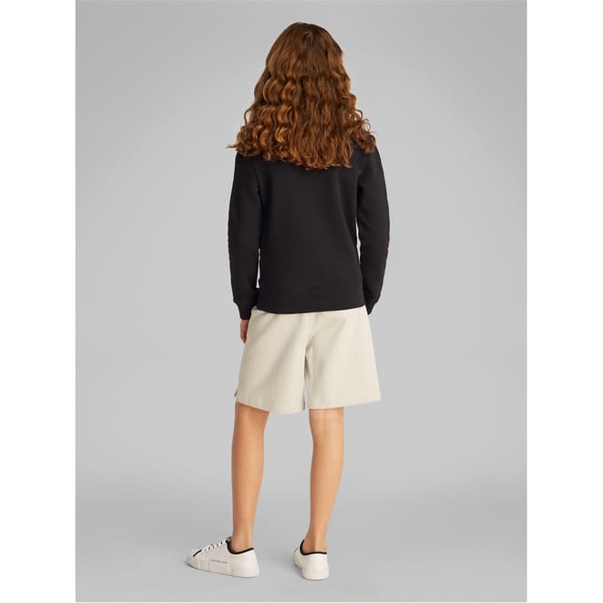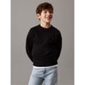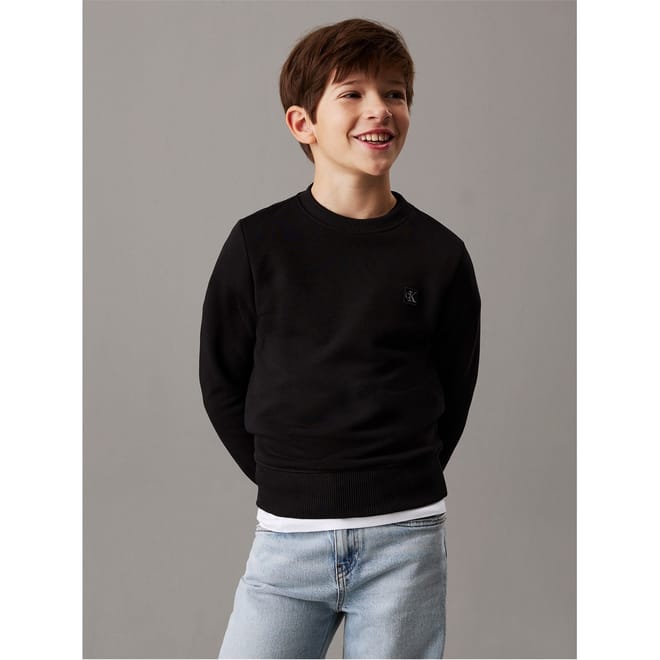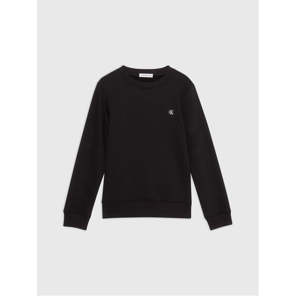 This Calvin Klein Jeans top features a solid pattern with a crew neck and long sleeves. The regular fit is complemented by ribbed cuffs and a ribbed collar, adding a touch of style. Embellished with a badge and logo, this top is a versatile addition to any wardrobe. -