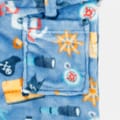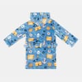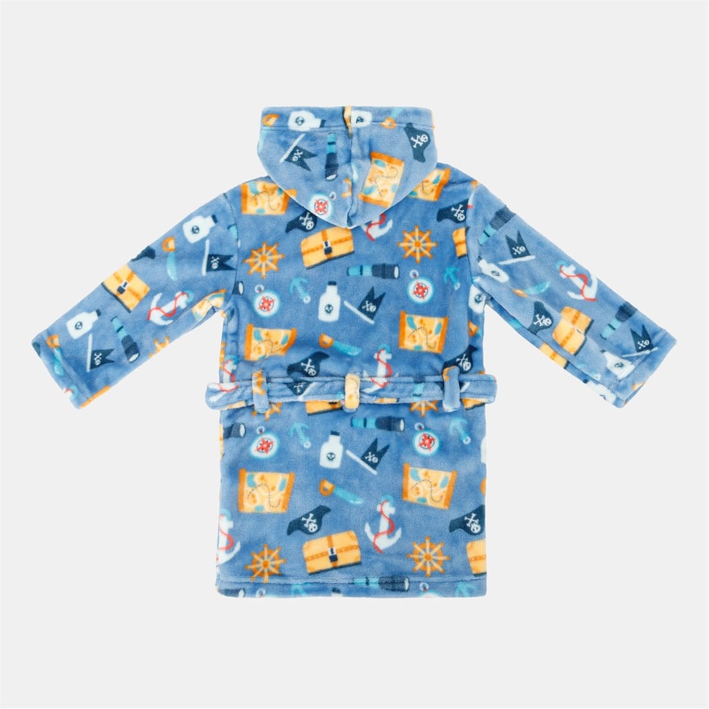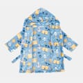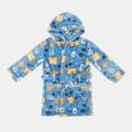 This adorable sleep robe features a fresh Tiffany blue base color adorned with playful orange dinosaur prints, complemented by blue dinosaur silhouettes and white botanical/starburst accents, creating a whimsical prehistoric jungle theme. These are fleece fabric with 100% Polyester robes suitable for boys. It is soft and comfortable to wear, which will make children happier.