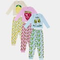 - A fun and comfy set of 3 pyjamas featuring playful fruit and animal prints.