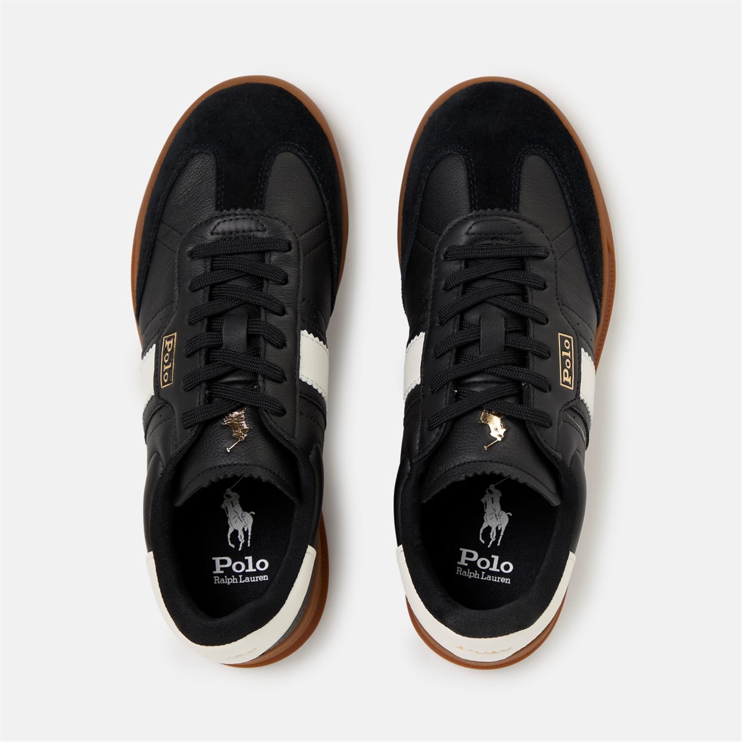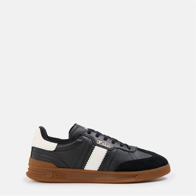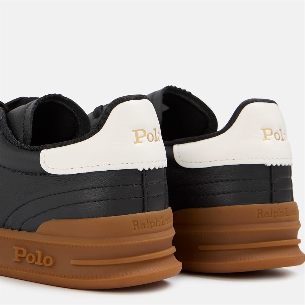 Premium leather construction meets classic court styling in these Polo Ralph Lauren trainers. A minimalist approach to athletic footwear that pairs perfectly with both casual and smart-casual looks. The distinctive side stripe detail adds a signature touch, while the cushioned sole provides day-long comfort. These court trainers showcase heritage sportswear at its finest, with gold-tone branding adding a luxe finish.