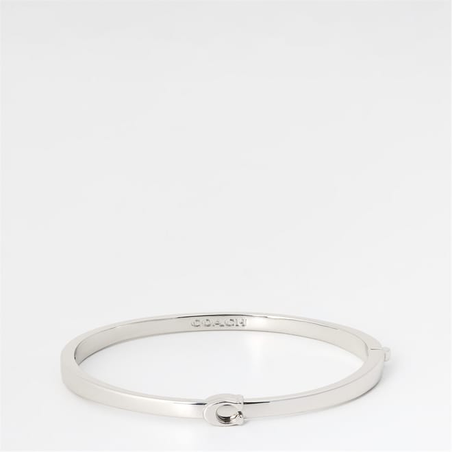 Coach's Hinge Bangles offer sleek style with a precise design. The hinged mechanism provides easy wear while maintaining the brand's characteristic look.