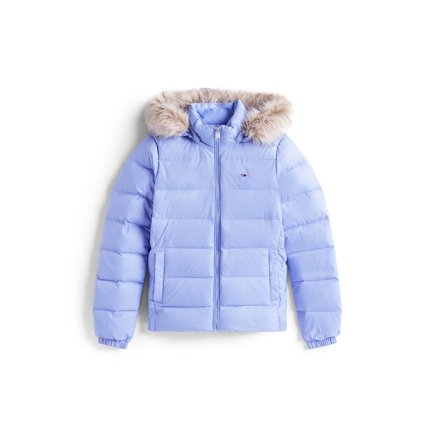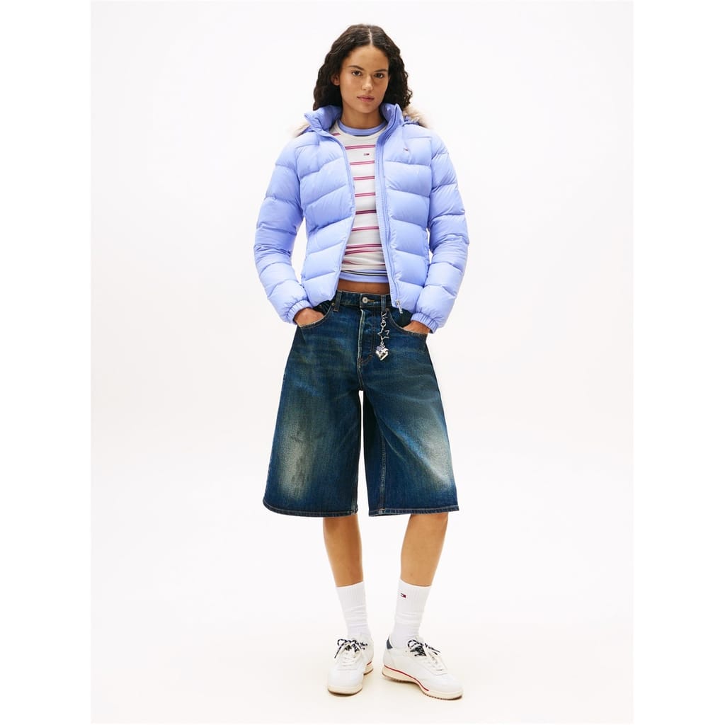 Add to your outerwear collection with the Tommy Jeans Essential Puffer Jacket. Crafted with long sleeves and a full zip closure, this piece features an all over quilted design. Complete with two side pockets and ribbed trims for a comfortable fit, this puffer jacket is finished with Tommy Jeans branding and a fur trim hood. Invest in this piece for the colder months.