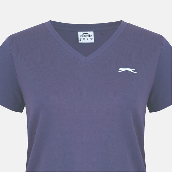 The Slazenger V Neck Tee-Shirt offers a great essential everyday style with its short sleeves, solid colouring and v-neck design, finished with the Slazenger Branded logo