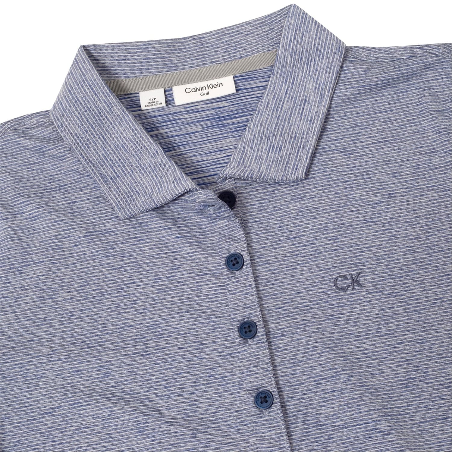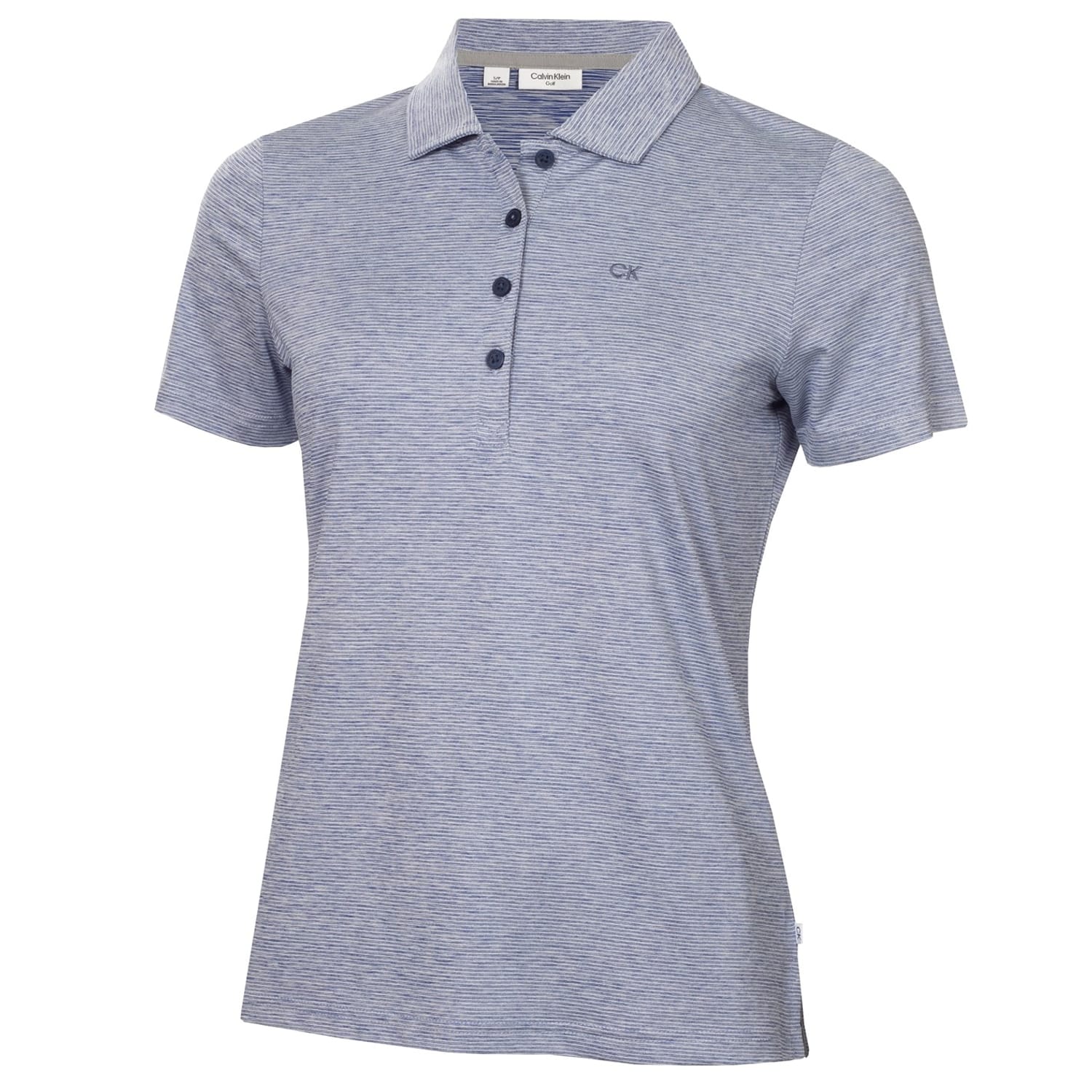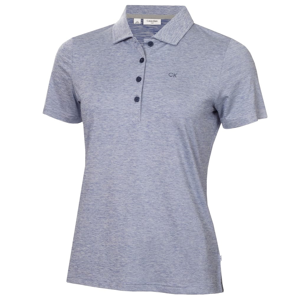 This Calvin Klein Golf top is a semi-formal piece designed for performance. It features a regular fit with short sleeves and a polo collar. The horizontal stripe pattern adds a touch of style, while the button closure ensures a neat finish. The top is embellished with a logo, reflecting the brand's signature touch. -
