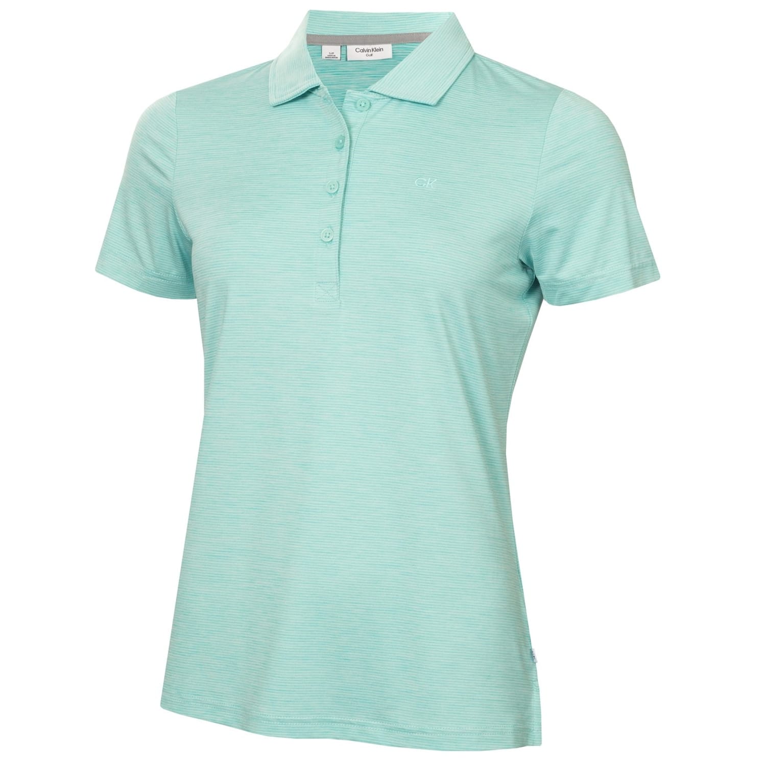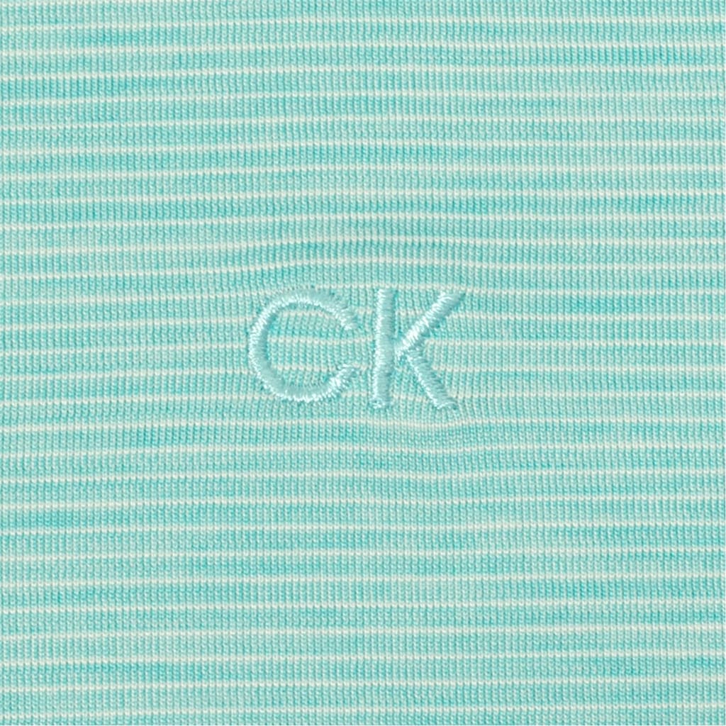 This Calvin Klein Golf top is a semi-formal piece designed for performance. It features a regular fit with short sleeves and a polo collar. The horizontal stripe pattern adds a touch of style, while the button closure ensures a neat finish. The top is embellished with a logo, reflecting the brand's signature touch. -