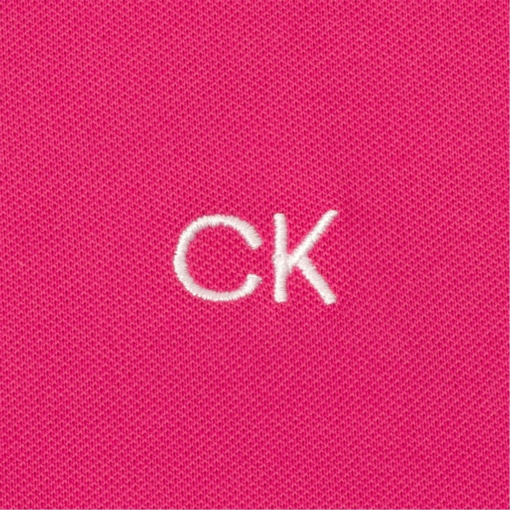 This Calvin Klein Golf top is a semi-formal piece designed for performance. It features a polo collar and short sleeves, offering a regular fit. The solid pattern is complemented by an embroidered logo, adding a touch of sophistication. The button closure ensures a neat finish, making it a versatile addition to your wardrobe. -