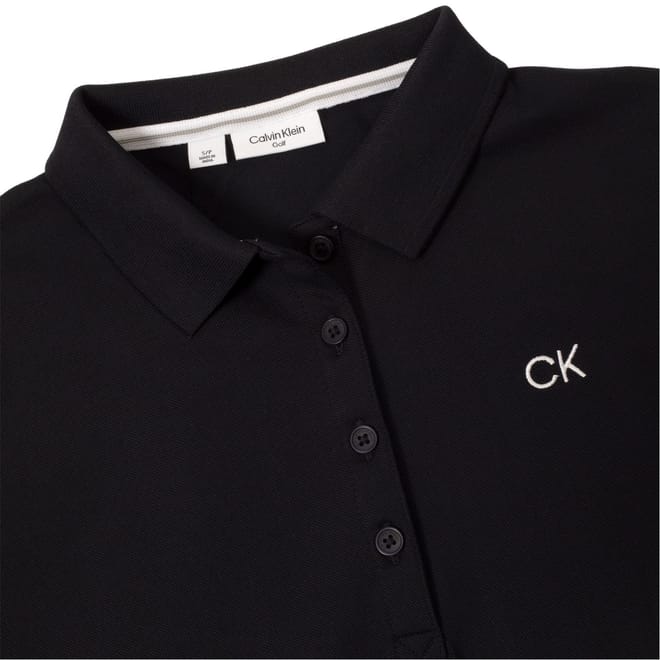 This Calvin Klein Golf top is a semi-formal piece designed for performance. It features a polo collar and short sleeves, offering a regular fit. The solid pattern is complemented by an embroidered logo, adding a touch of sophistication. The button closure ensures a neat finish, making it a versatile addition to your wardrobe. -