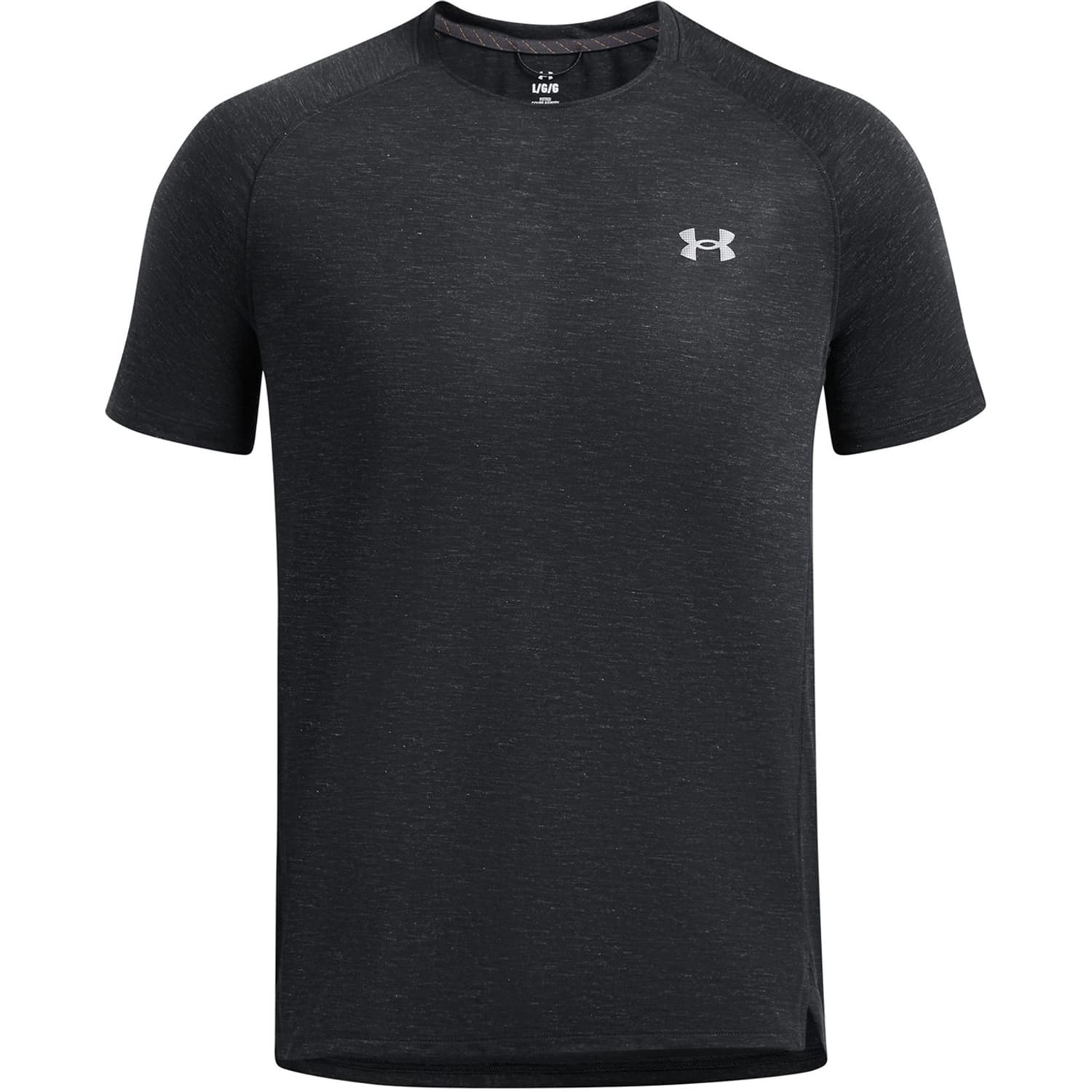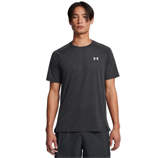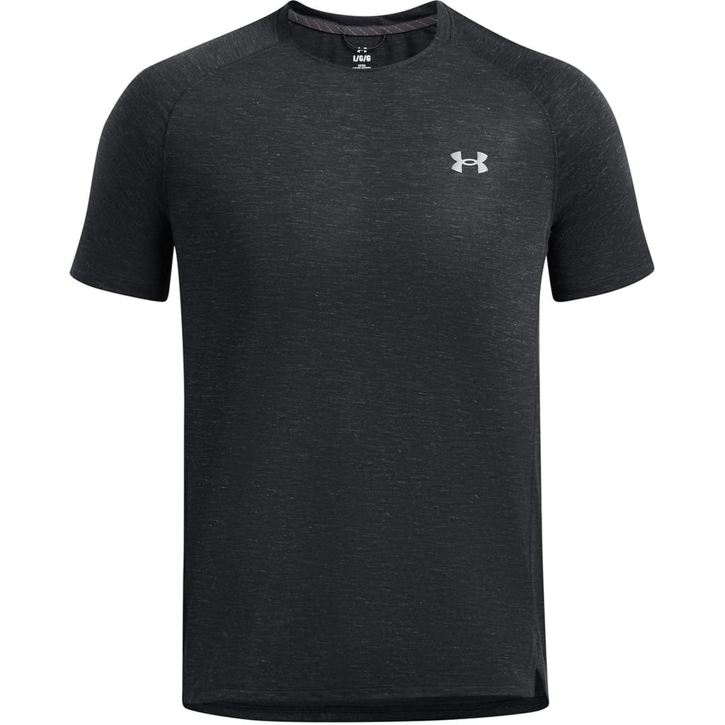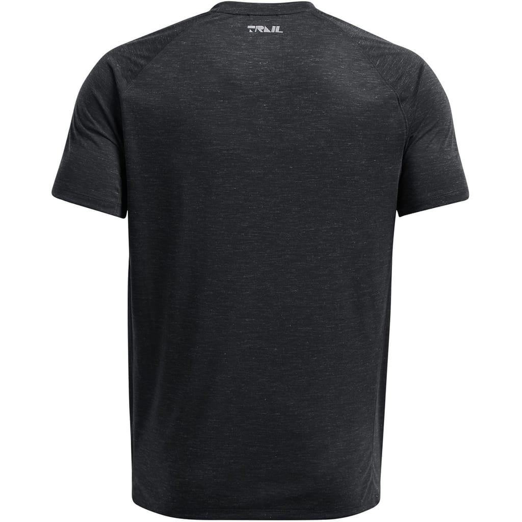 This Under Armour top is designed for trail and run enthusiasts, featuring a heathered pattern and a crew neck. The short raglan sleeves offer enhanced mobility, while the regular fit ensures comfort during performance activities. Part of the activewear collection, it includes a subtle logo embellishment, making it a practical choice for active pursuits. -