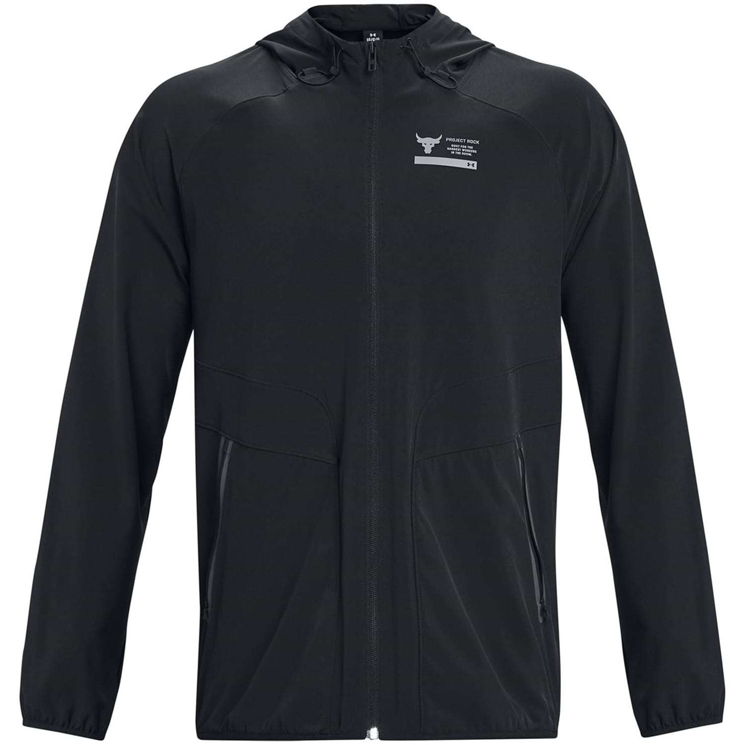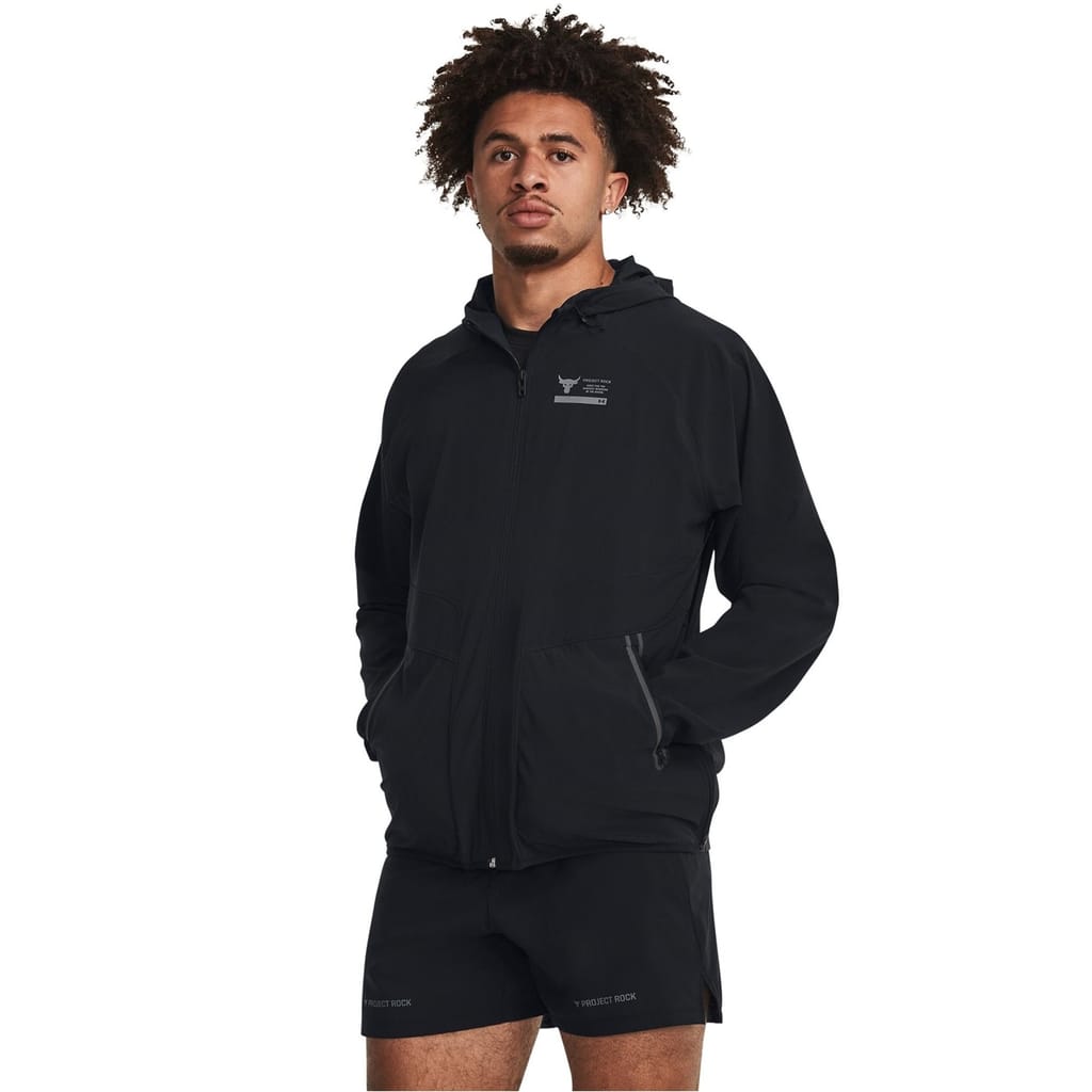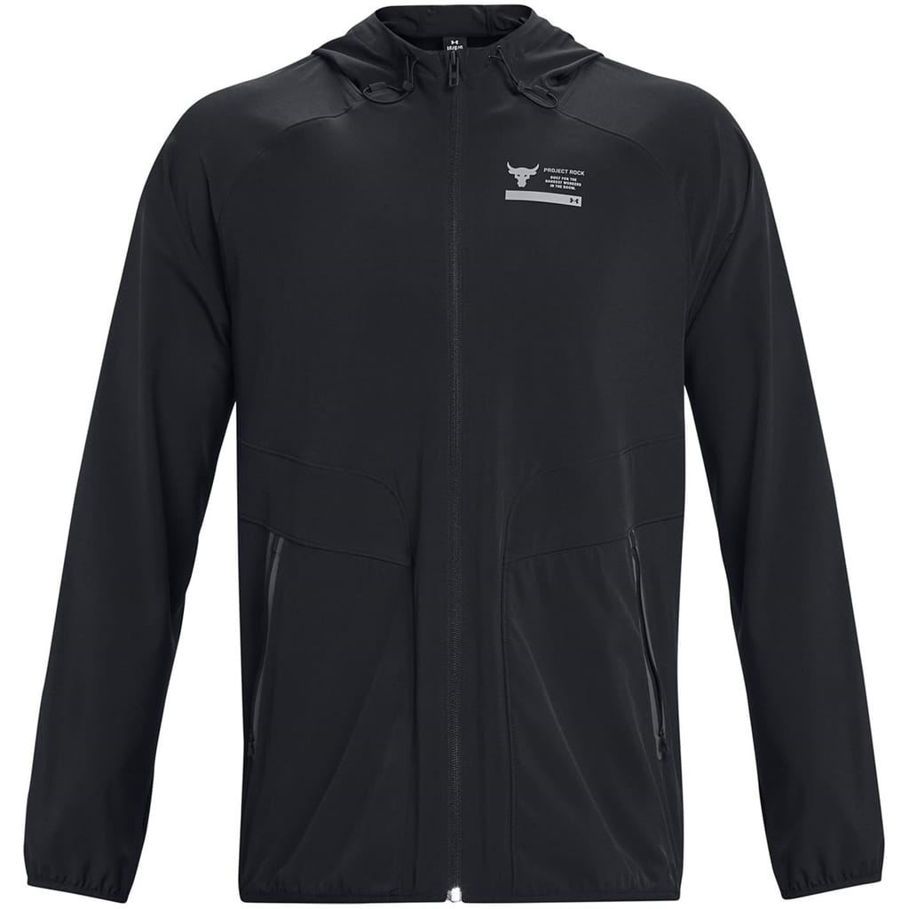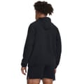 This Under Armour top is designed for performance with a relaxed fit and raglan long sleeves. Featuring a hooded neckline and a full zipper closure, it offers practicality and style. The solid pattern is complemented by a large genie graphic and logo embellishments. Elasticated cuffs and pockets add functionality, making it a versatile choice for activewear enthusiasts. -