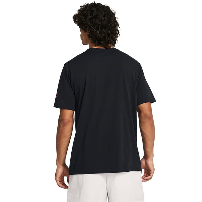 This Under Armour top is designed for performance, featuring a short sleeve and a crew neck. It showcases a large genie graphic print, adding a unique touch to your casual or activewear collection. The regular fit ensures comfort, while the logo embellishment highlights the brand's identity. -