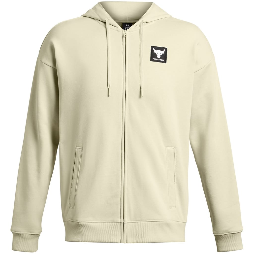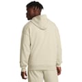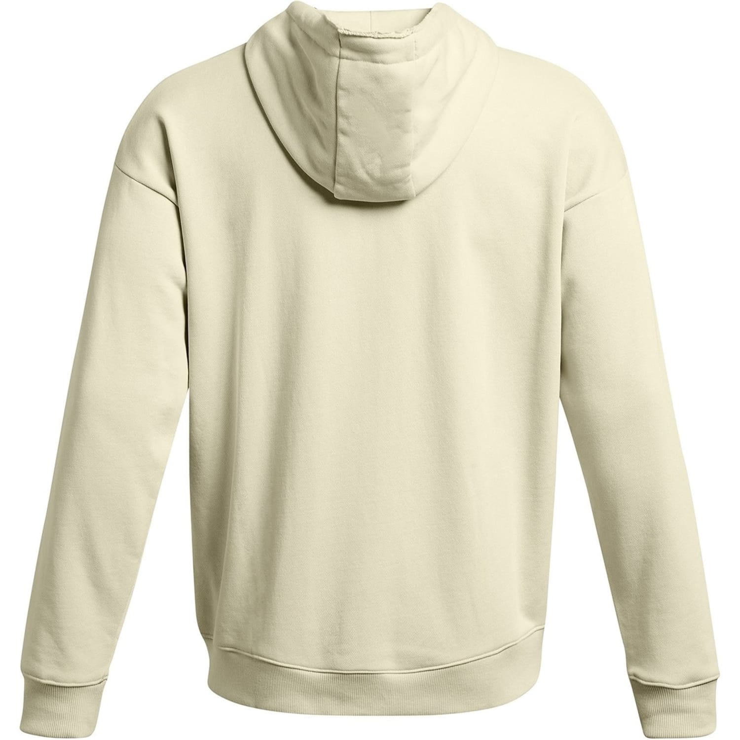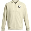 This Under Armour sweatshirt jacket features a hooded design with a full zipper closure. It offers a relaxed fit with drop shoulder sleeves and ribbed cuffs for added comfort. The solid pattern is complemented by a logo embellishment, adding a touch of brand identity. The ribbed hemline ensures a snug fit, making it a versatile addition to your wardrobe. -