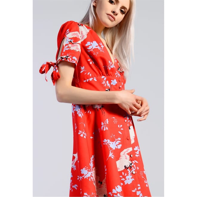 Glamorous Women's Red Floral Print Skater Mini Dress. Add a pop of colour to your wardrobe with our vibrant red floral print skater mini dress. Featuring a playful floral pattern and a flared silhouette, this dress is perfect for casual outings or summer events. Its short length and comfortable fit make it a fun and stylish choice for any occasion.