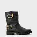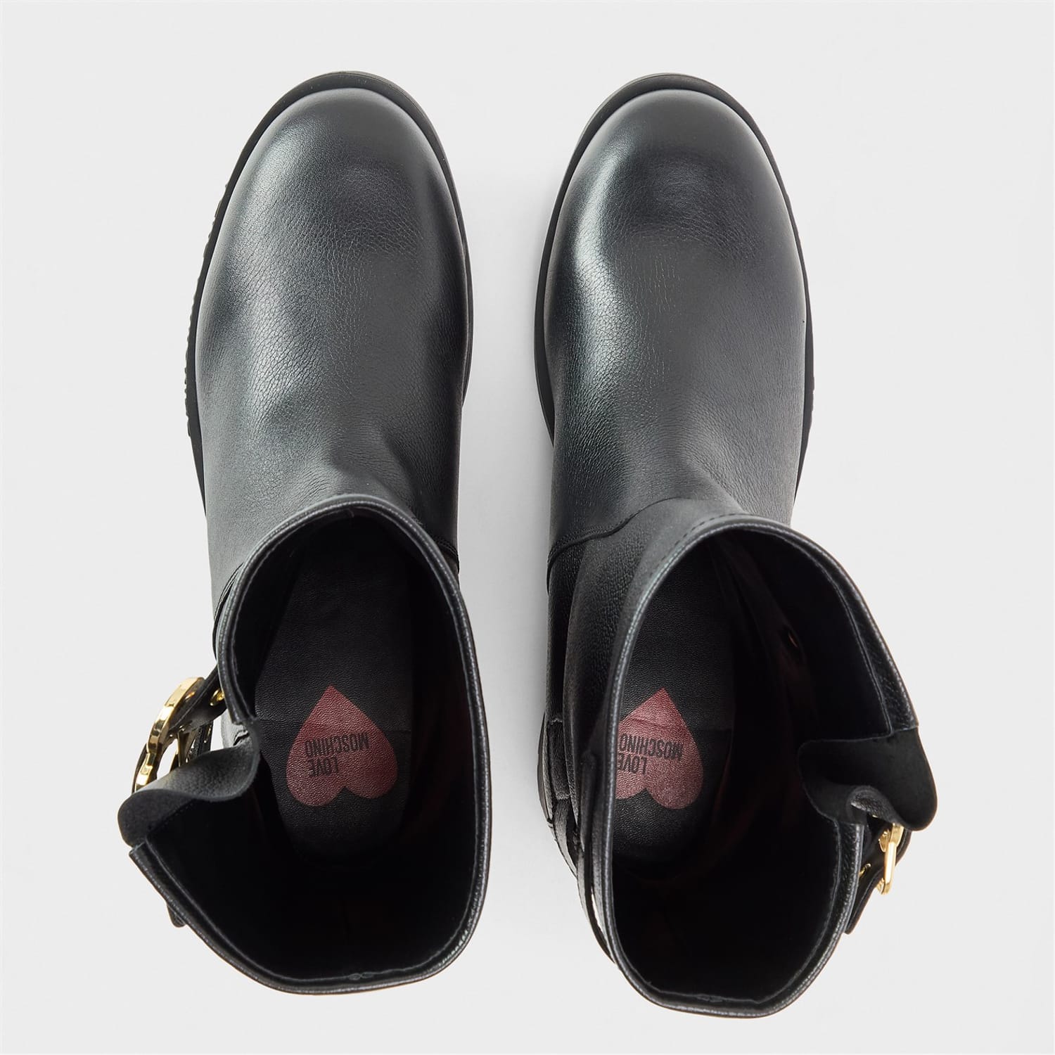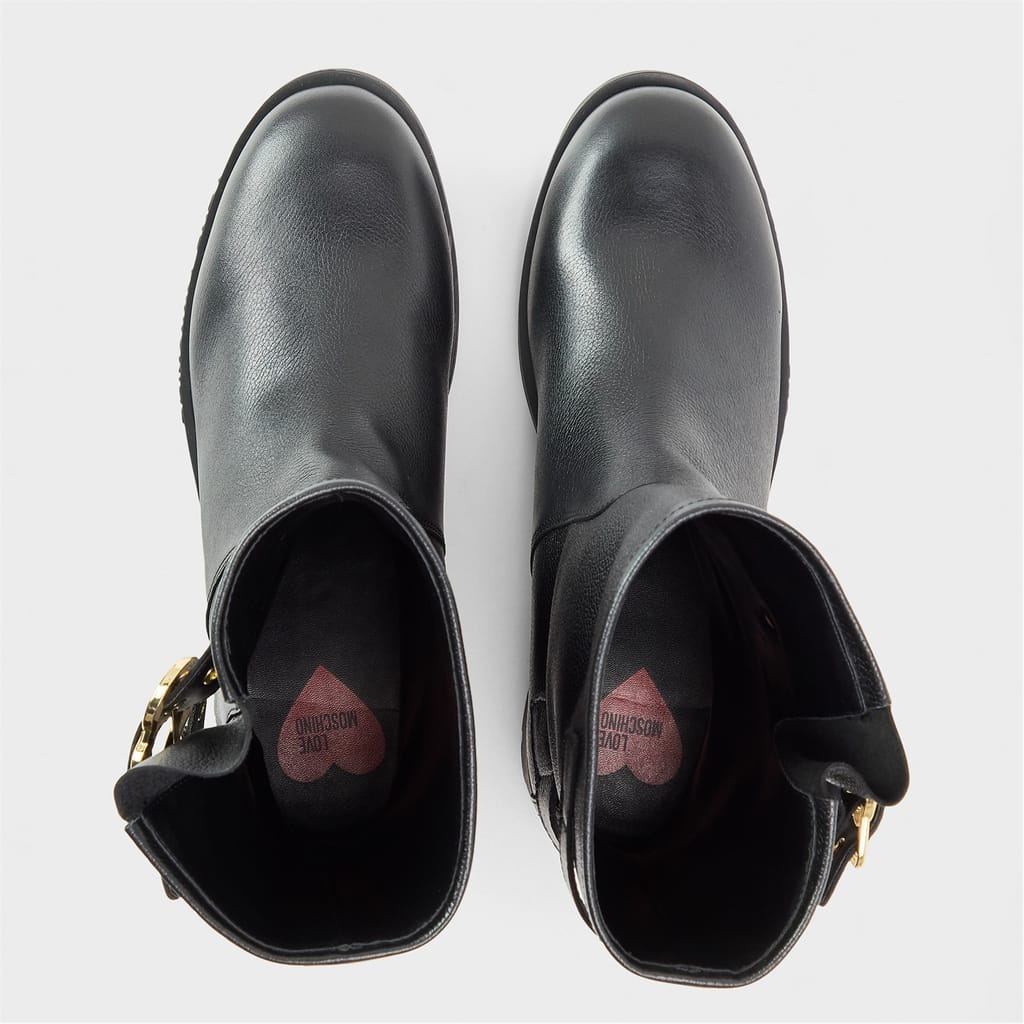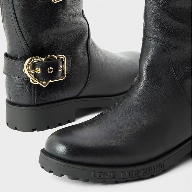 Discover the edgy appeal of Love Moschino motorcycle boots. Crafted for those who appreciate bold style, these boots feature a classic round toe design. Perfect for adding a touch of rebellion to your footwear collection, they embody the distinctive flair of Love Moschino. Ideal for those seeking a statement piece in their shoe wardrobe. -