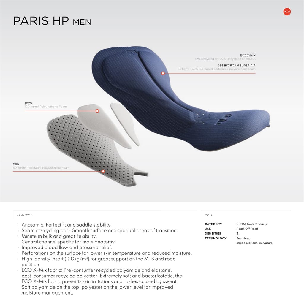 - We’ve retained the hugely-popular PARIS HP MEN seat pad. Compressive and resistant to curling and pilling, it makes for a high performing, durable short that will last season after season.