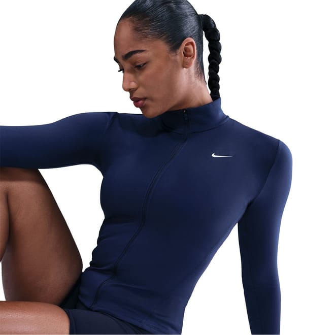 This Nike running jacket from the activewear collection is designed for performance. Featuring a full zipper closure and a zip neck, it offers a slim fit with a solid pattern. The jacket is embellished with a logo, adding a touch of brand identity. -