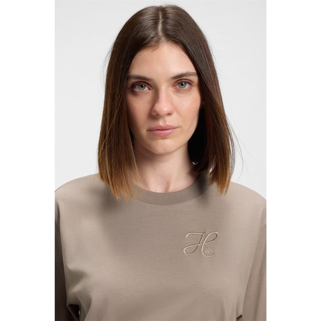This Hugo vintage top features an oversize fit and a classic crew neck. The solid pattern and short sleeves offer a timeless appeal, making it a versatile addition to any wardrobe. -